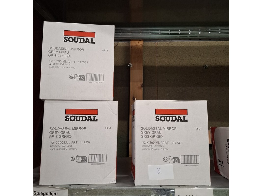 Merk: Soudal Product: Partij diverse glaskit en Soudaseal mirror Kleur: diverse kleuren