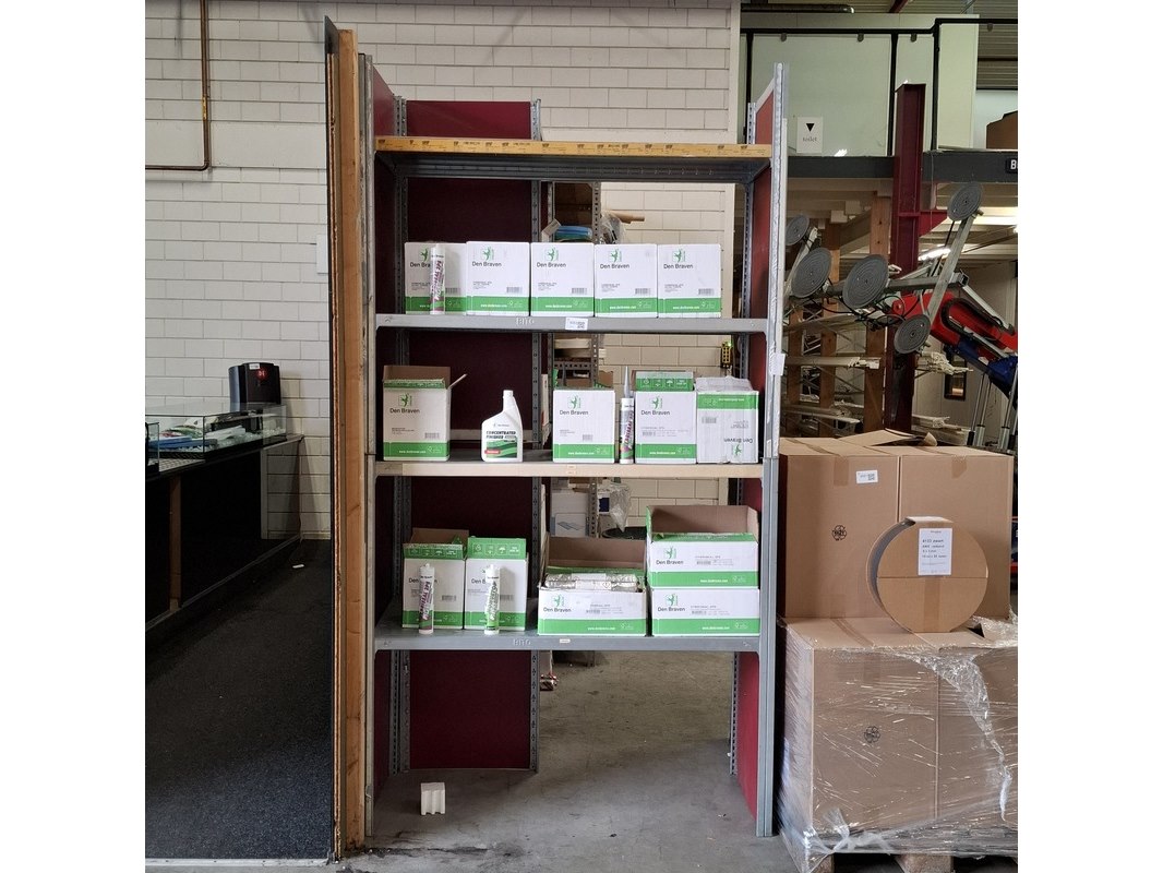 Product: Diverse stelling Materiaal: metaal / hout Specificaties: 2x lxdxh ca. 136x53x250cm 1x lxdxh ca. 301x81x251cm