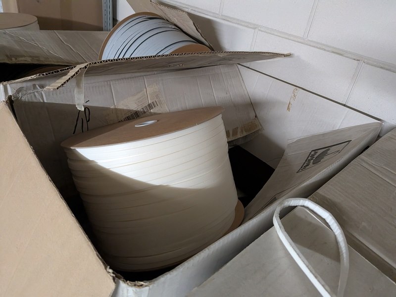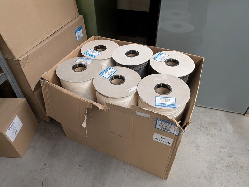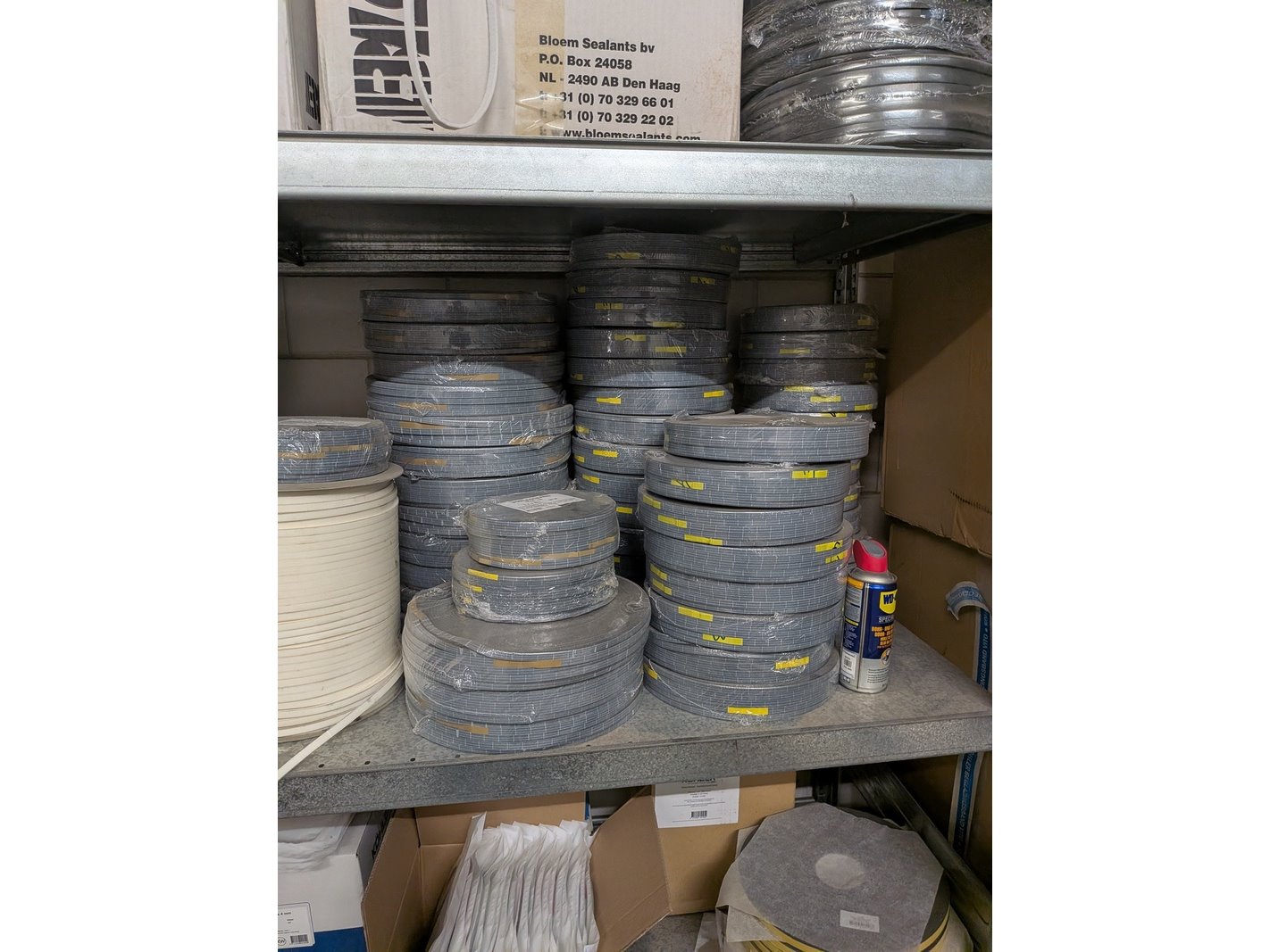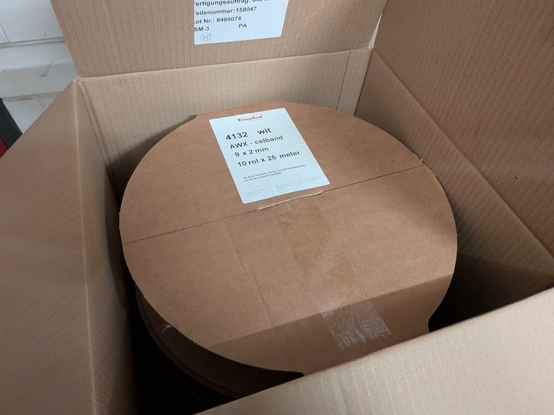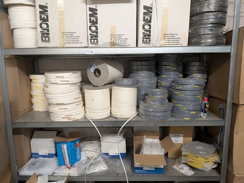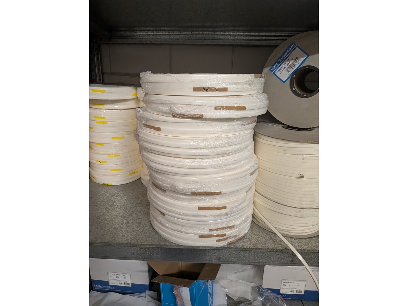Product: Partij divers glasband en celband Kleur: diverse kleuren Afmeting: diverse afmetingen Specificaties: inclusief stelling hxbxd ca. 250x206x62cm