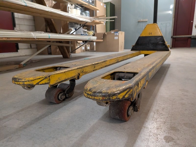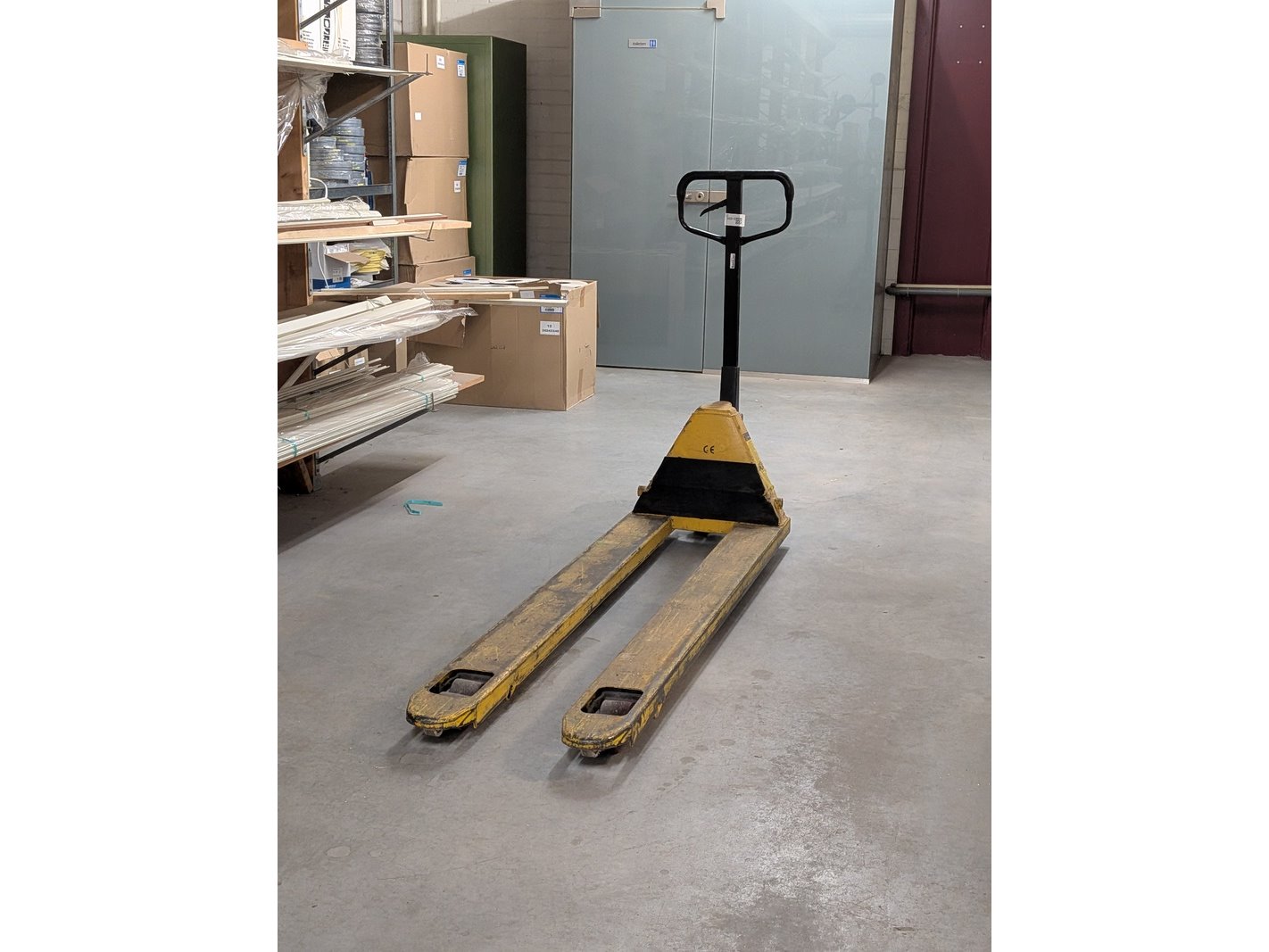 Product: Palletwagen, max 2500 kilo Afmeting: lepellengte ca. 180cm BouwJaar: 2019