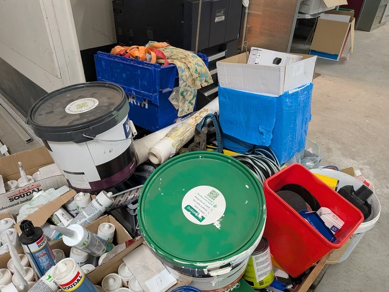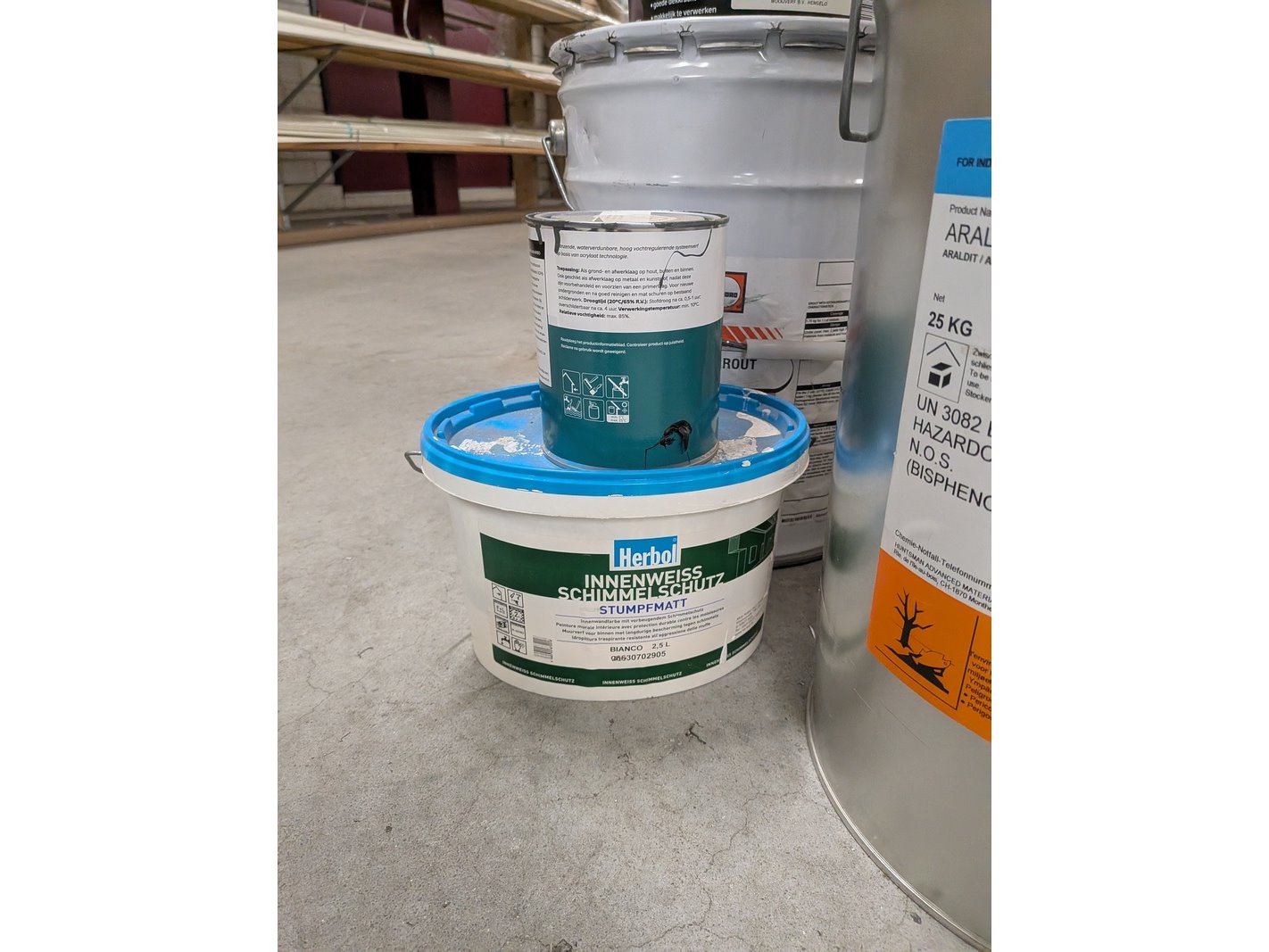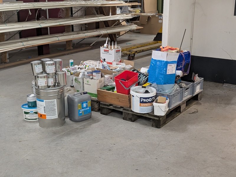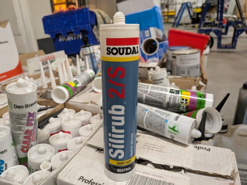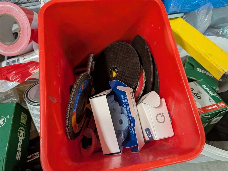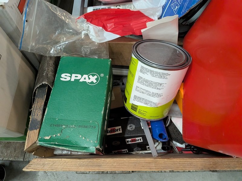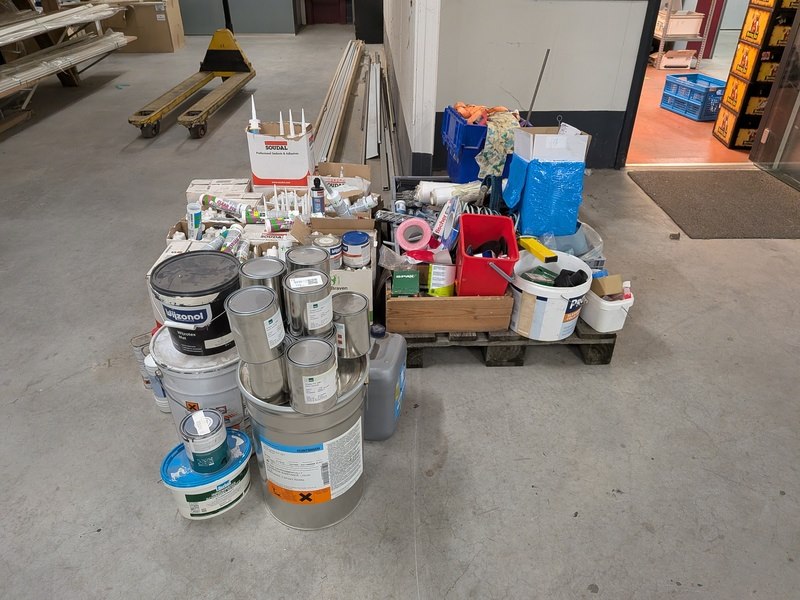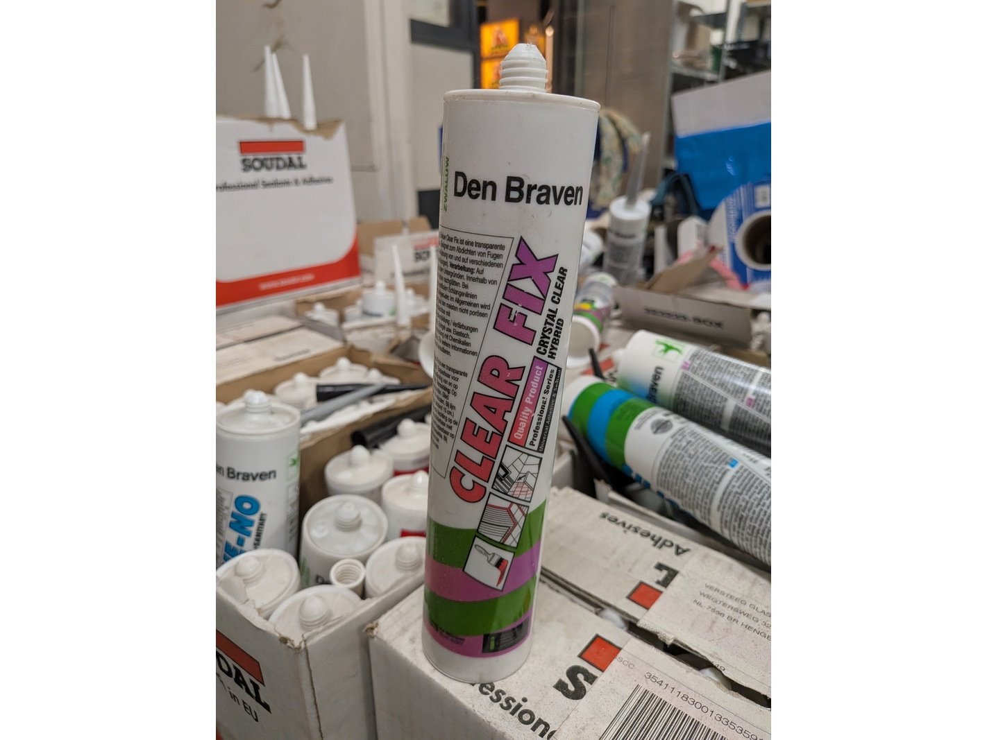 Product: Partij diversen Specificaties: bestaande uit o.a. : diverse kitten (Soudal en Den Braven), schroeven, epoxy, diverse verf restanten, handzagen, ratels, wikkelfolie etc.
