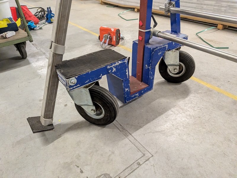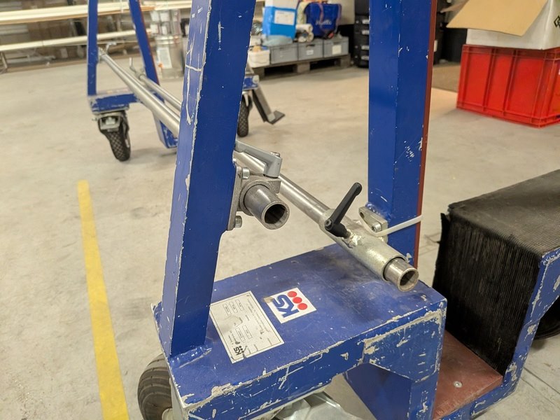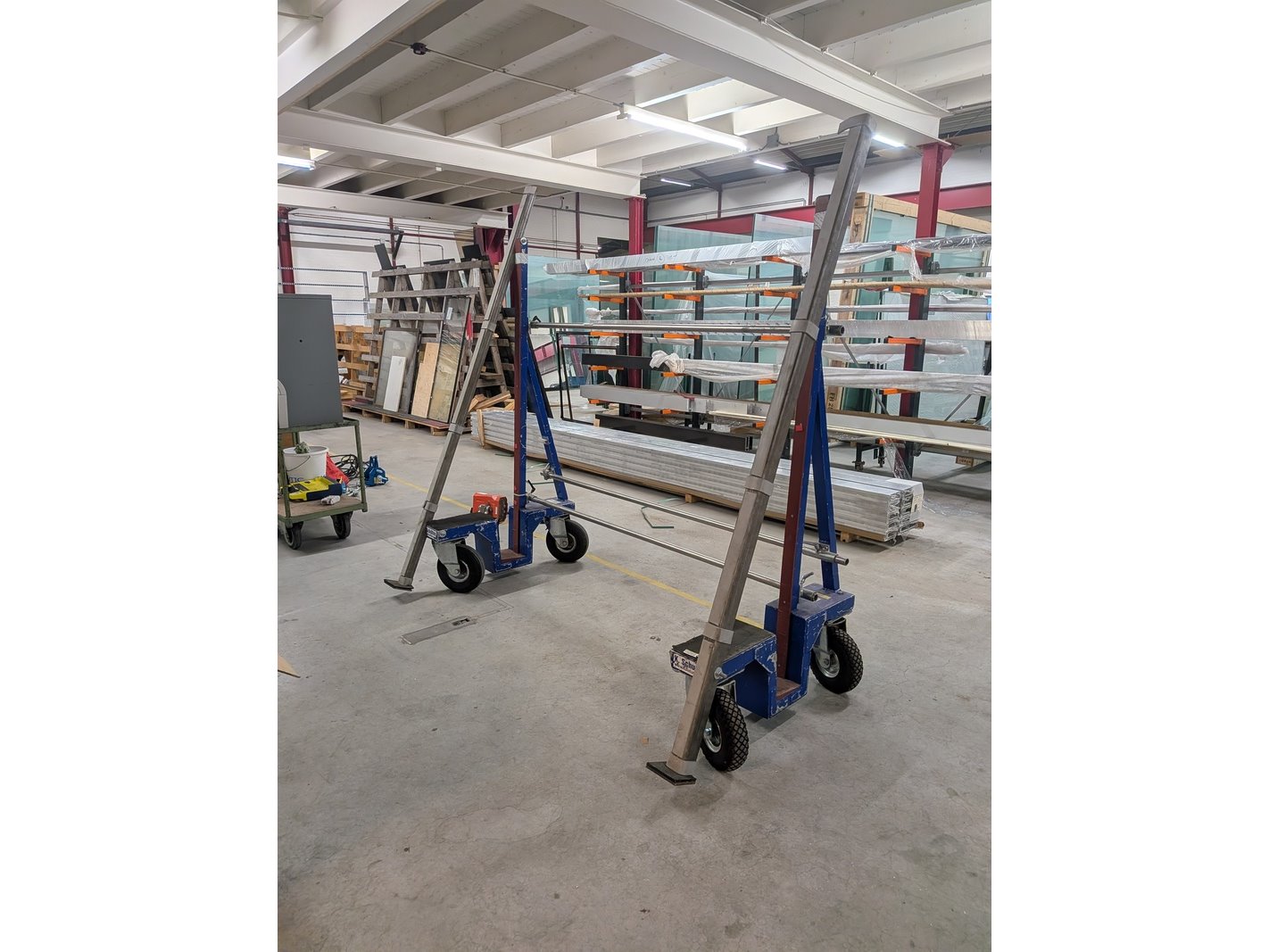 Merk: KS Schulten Product: Glastransporthulp Afmeting: opstelling hxbxd ca. 209x211x108cm BouwJaar: 2012 Specificaties: eigen gewicht ca. 60 kilo, max draaglast ca. 800 kilo