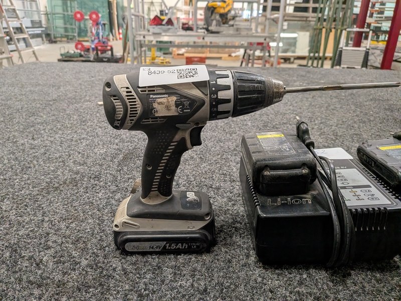 Merk: Panasonic Product: Accu boormachine Specificaties: inclusief 2x accu 14,4V, 1.5Ah, 1x accu 14,4V, 3.3Ah en lader