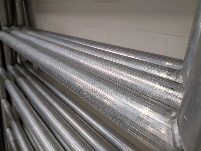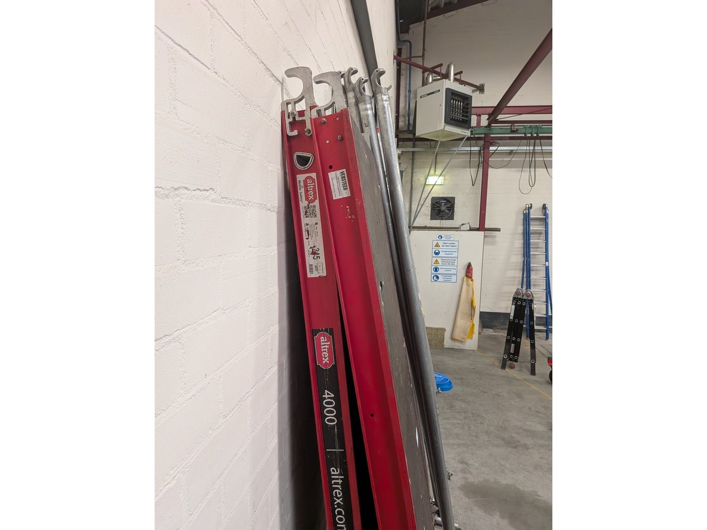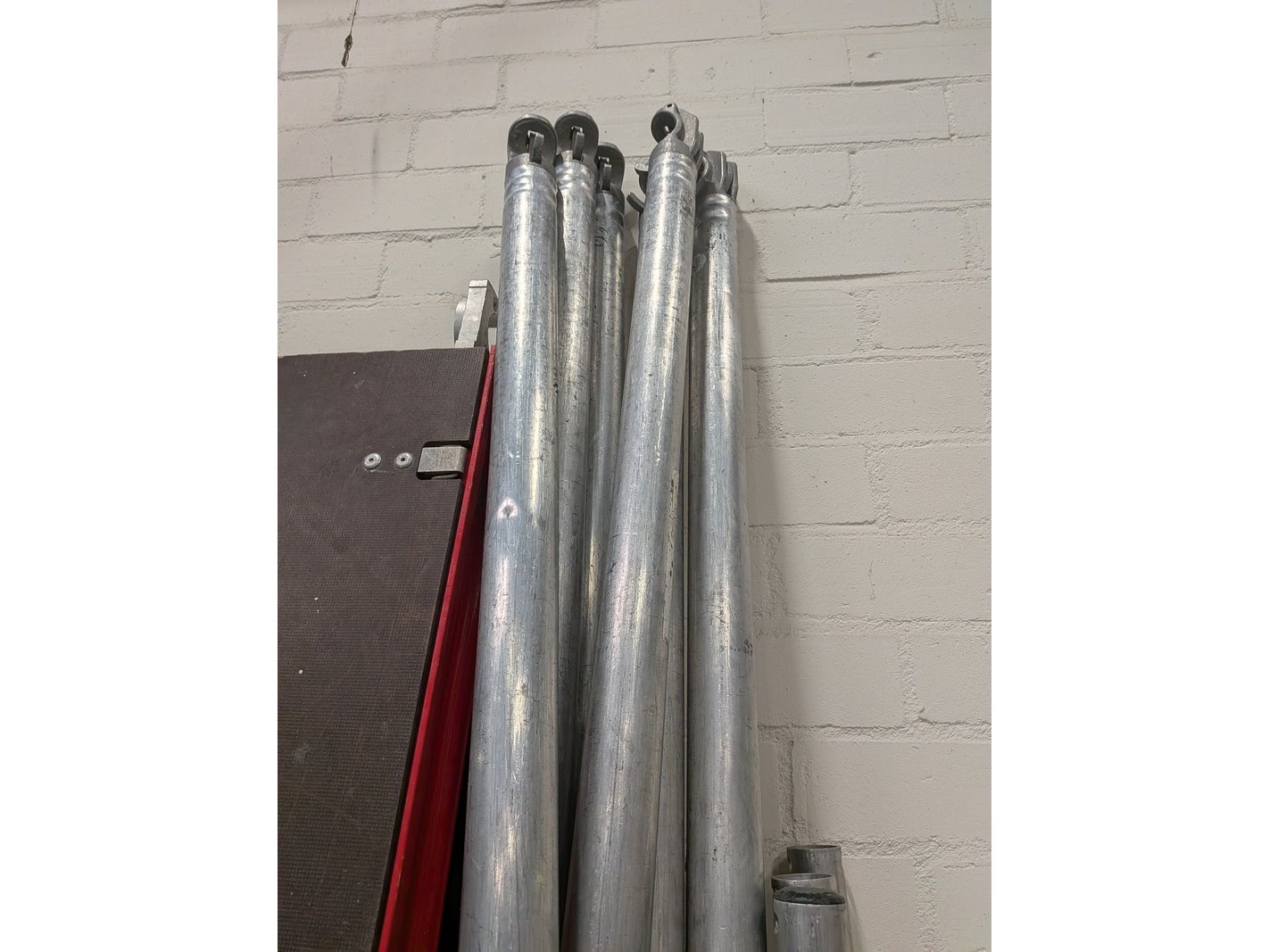 Merk: Altrex Product: Rolsteiger Specificaties: bestaande uit: 4x opbouwdeel hxb ca. 197x134cm 4x horizontaalschoor lengte ca. 262cm 7x diagonaalschoor lengte ca. 283cm stabilisatieschoor 2x loopbrug met kruipgat lxb ca. 254x61cm 4x zwenkwiel en 2x steigerbumper