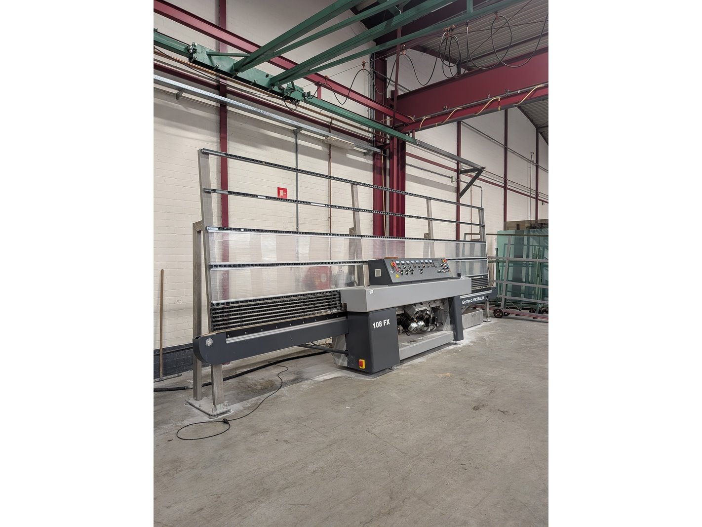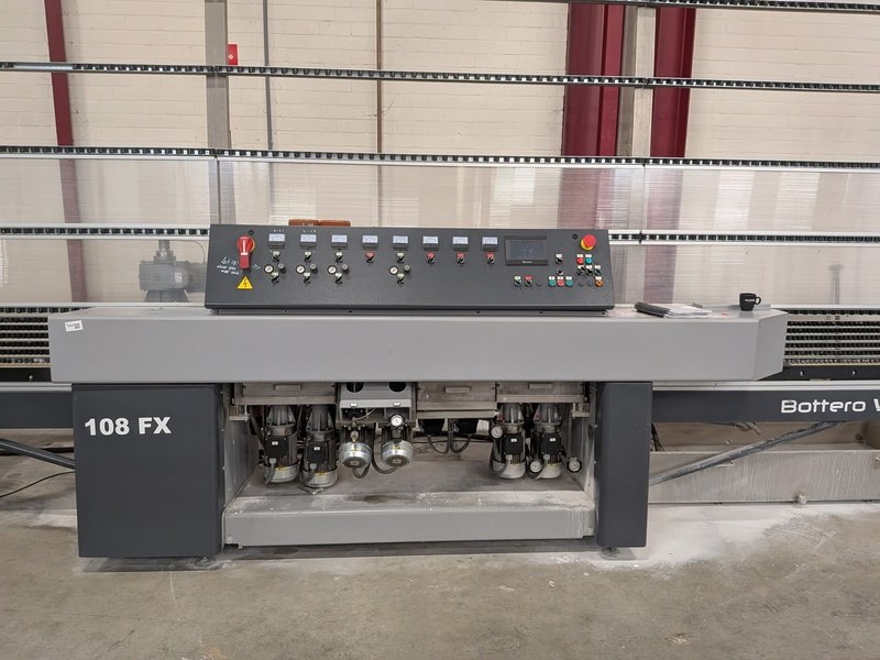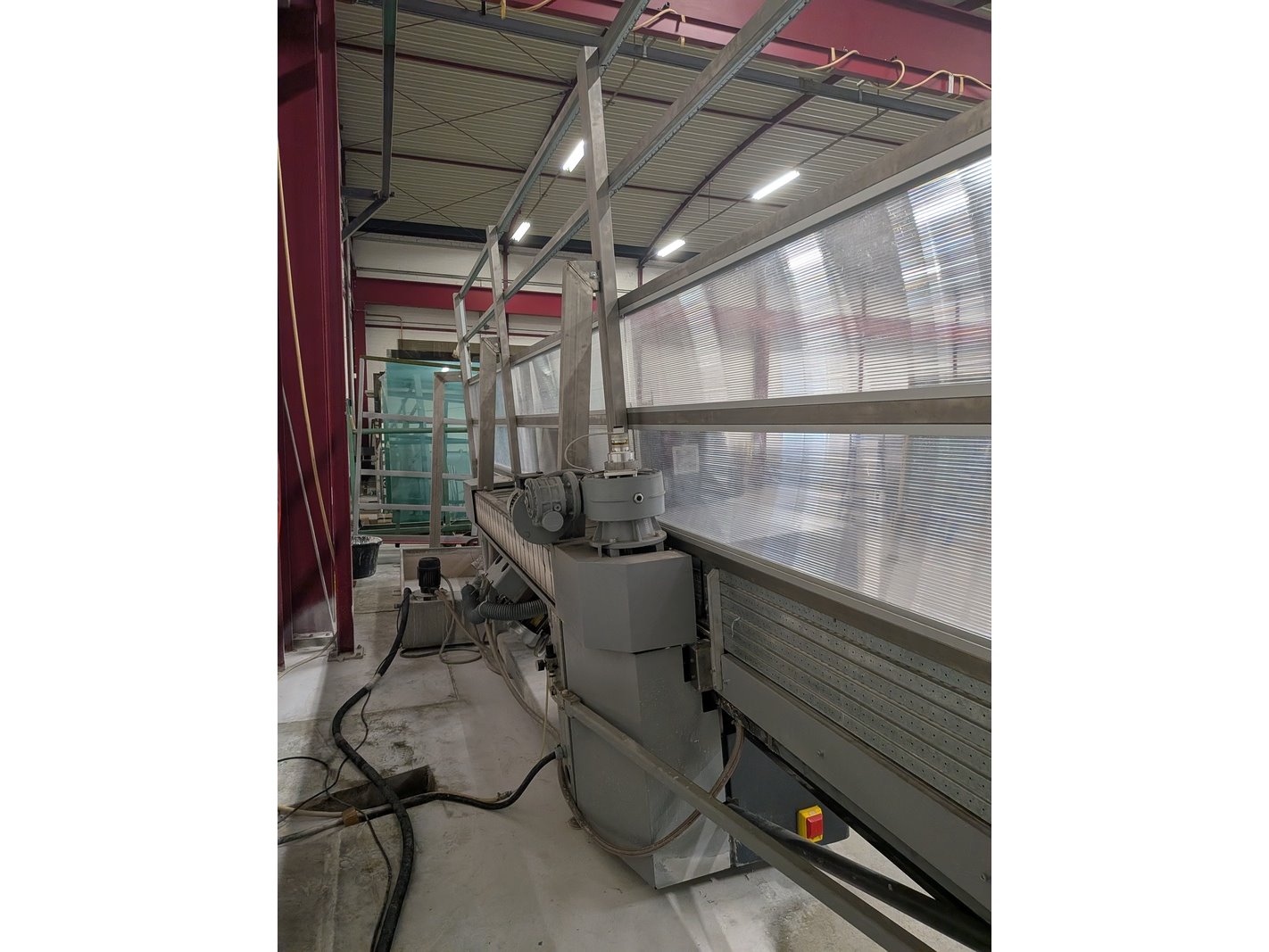 Merk: Bottero Product: Glasrand bewerkingsmachine Afmeting: lxbxh ca. 760x110x280cm BouwJaar: 2018 Specificaties: 400V, eigen gewicht ca. 2600 kilo serienummer GG108X-23144