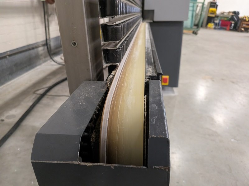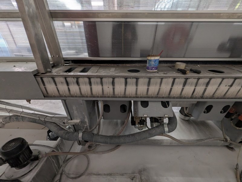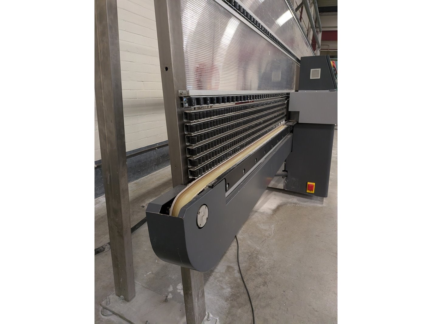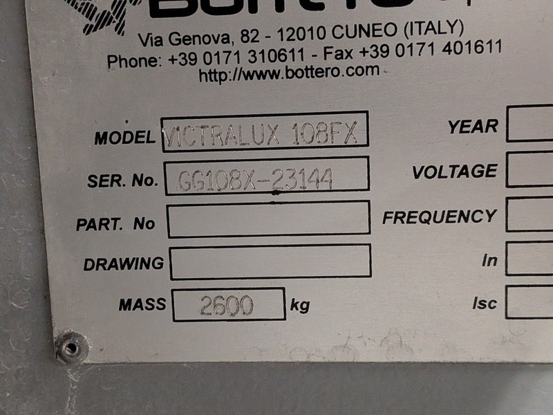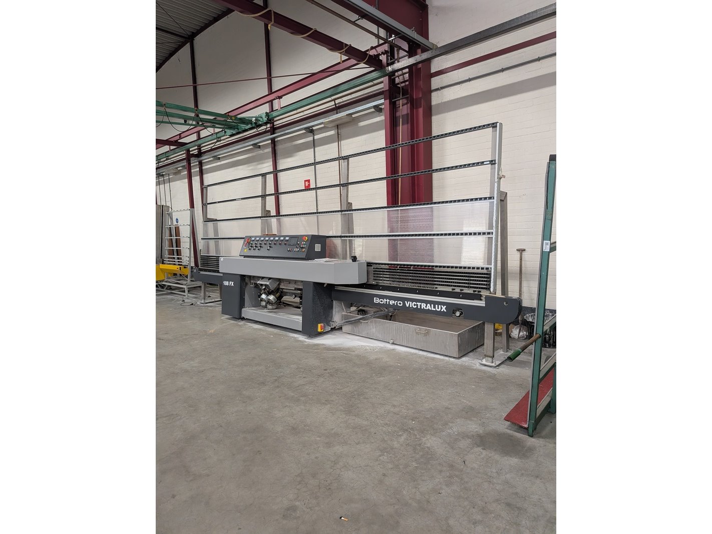 Merk: Bottero Product: Glasrand bewerkingsmachine Afmeting: lxbxh ca. 760x110x280cm BouwJaar: 2018 Specificaties: 400V, eigen gewicht ca. 2600 kilo serienummer GG108X-23144