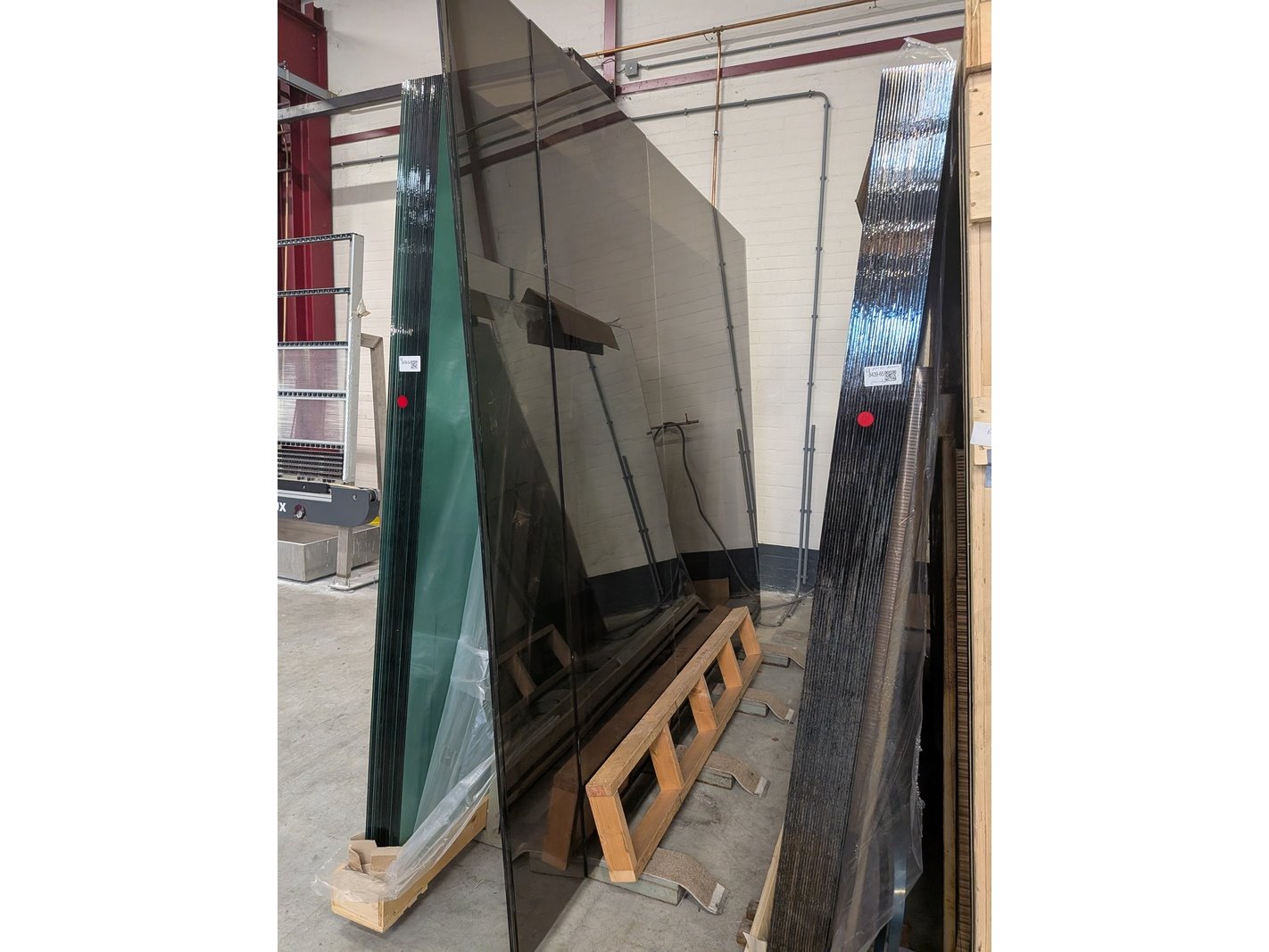 Product: Diverse glasplaat Specificaties: waarvan: 1x ca. 255x94cm, dikte ca. 6mm 3x ca. 255x320cm, dikte ca. 6mm ca. 21x ca. 225x330cm, dikte ca. 6mm inclusief bok Let op! Koper dient zelf voor hijs en hefmiddelen te zorgen