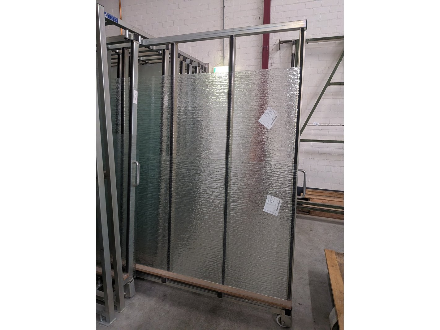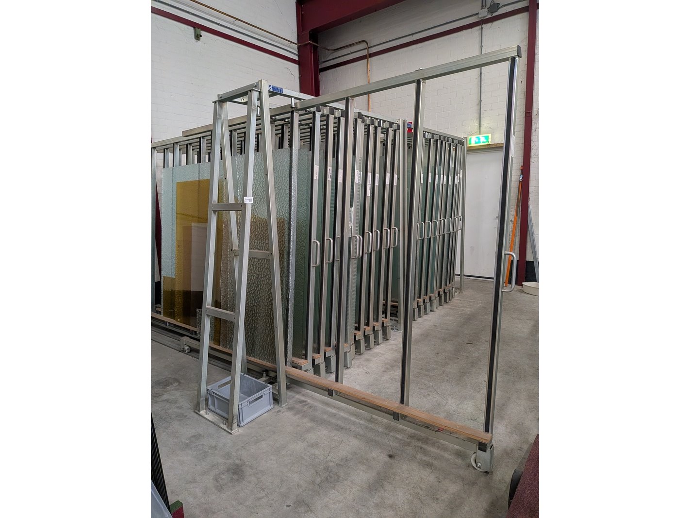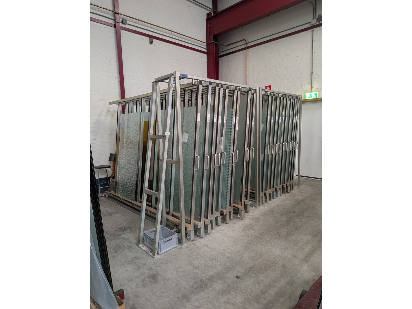 Merk: SMT Product: 10-Vaks glasmagazijn Afmeting: hxbxd ca. 225x186x305cm BouwJaar: 2002 Specificaties: inclusief inhoud bestaande uit diverse glasplaten