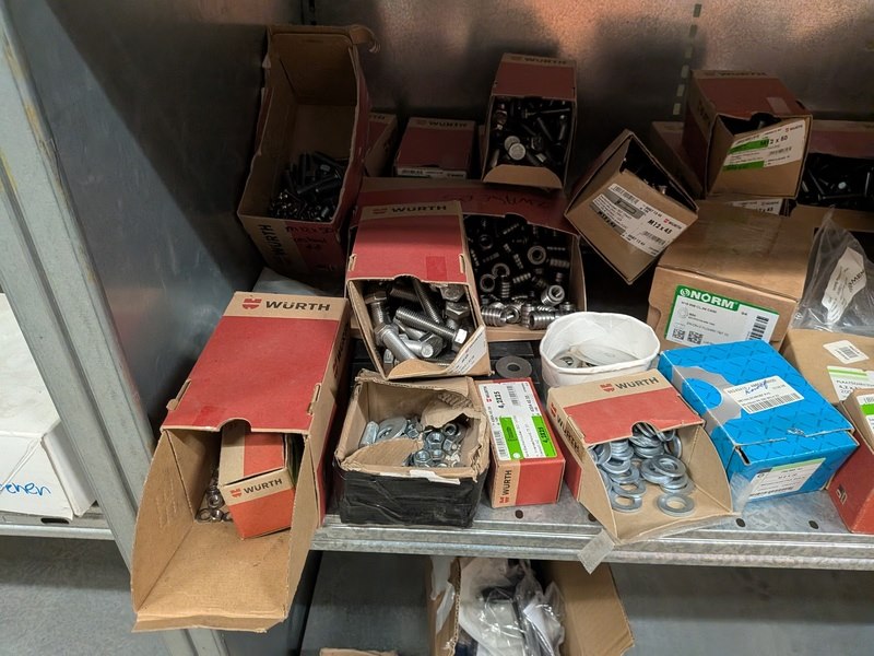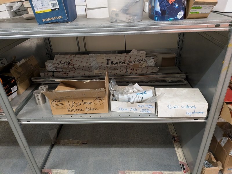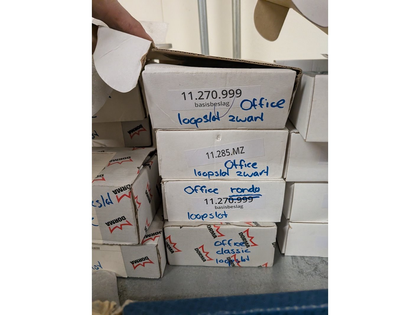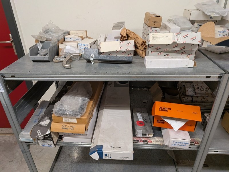 Product: Partij ijzerwaar Specificaties: o.a. bouten, inbusbouten, koppelbussen, moeren, ringen, diverse sloten, deurkrukken, diverse montage materiaal t.b.v. glasplaten etc.