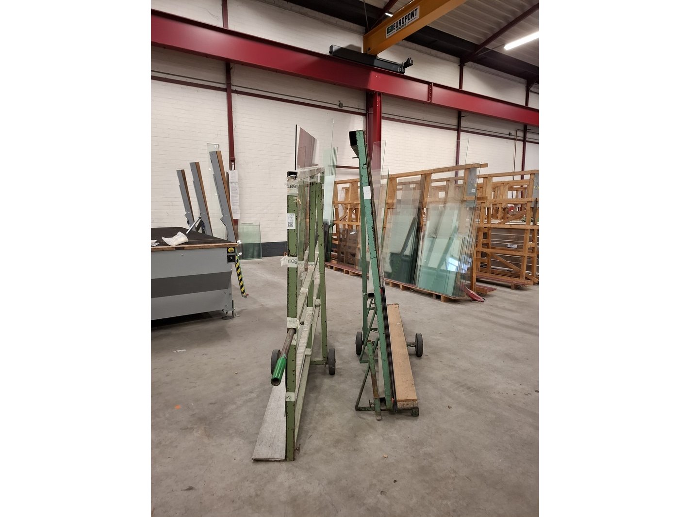 Product: Platenwagen Specificaties: 1x hxb ca. 160x200cm, 1x ca. 180x200cm inclusief diverse glasplaten