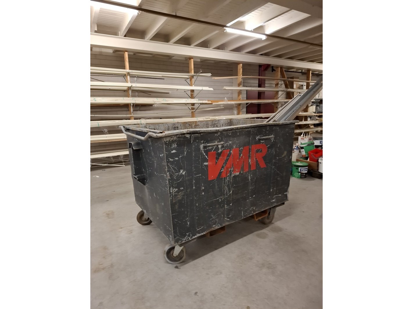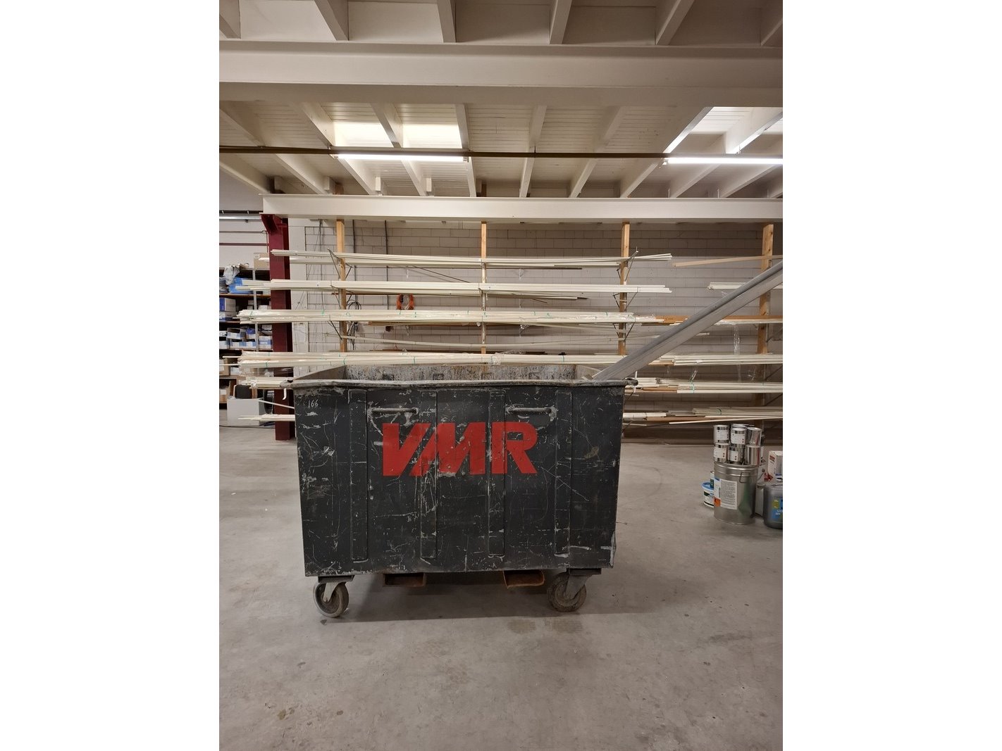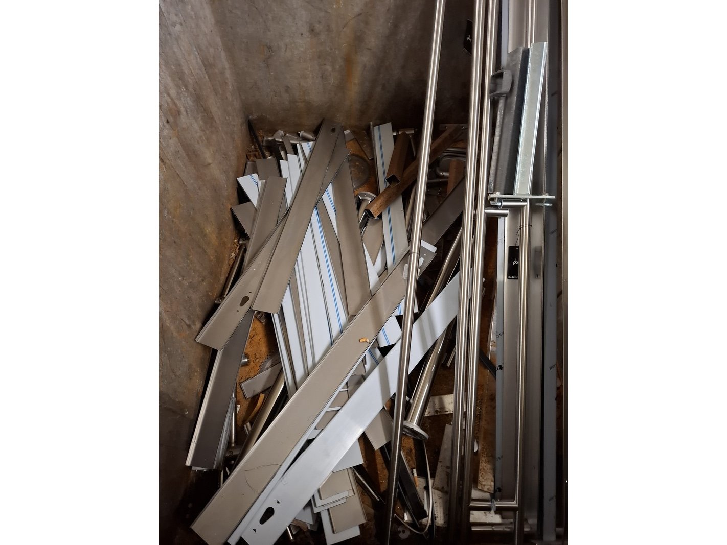 Product: Metalen afvalcontainer met inhoud Afmeting: lxbxh ca. 162x108x120cm Specificaties: inhoud diverse metalen reststukken