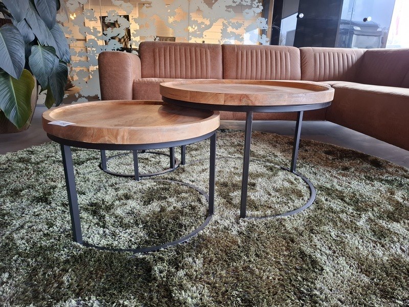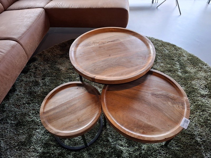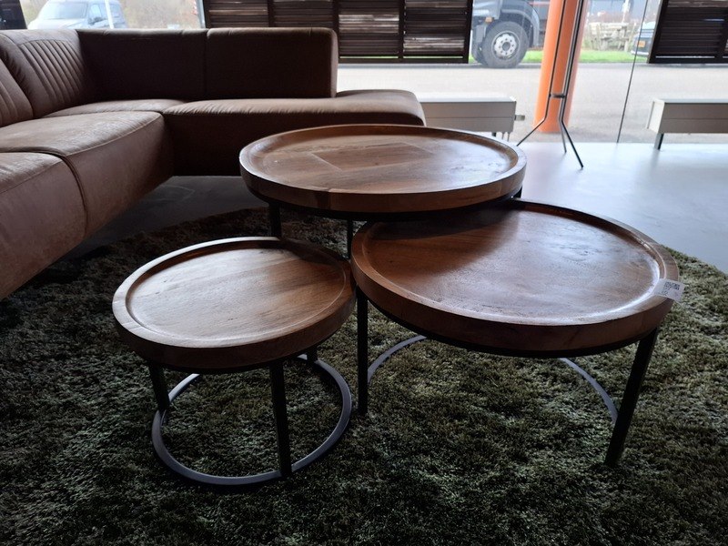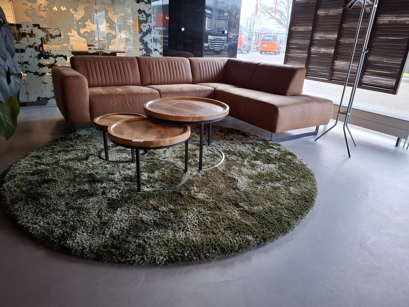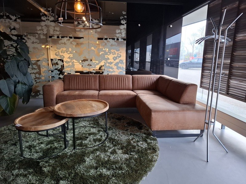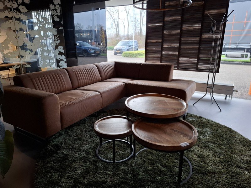 Product: Zitopstelling Specificaties: bank lederlook lxbxh ca. 270/200x92x75cm, zithoogte ca. 45cm 3x salontafel, doorsnede ca. 46/60/75cm karpet doorsnede ca. 250cm kapstok
