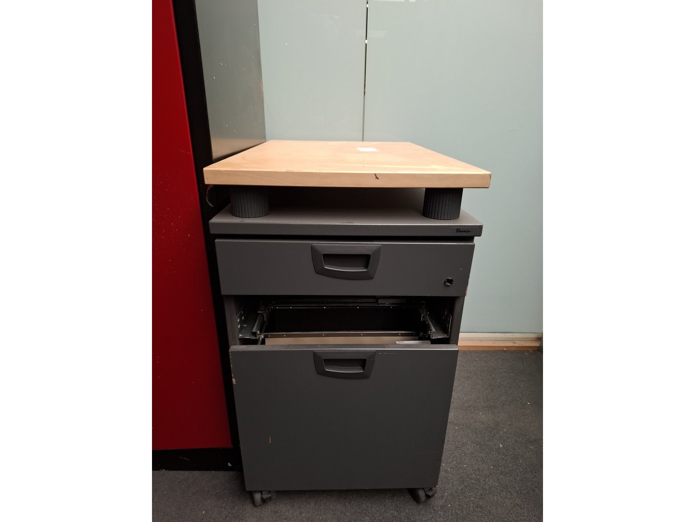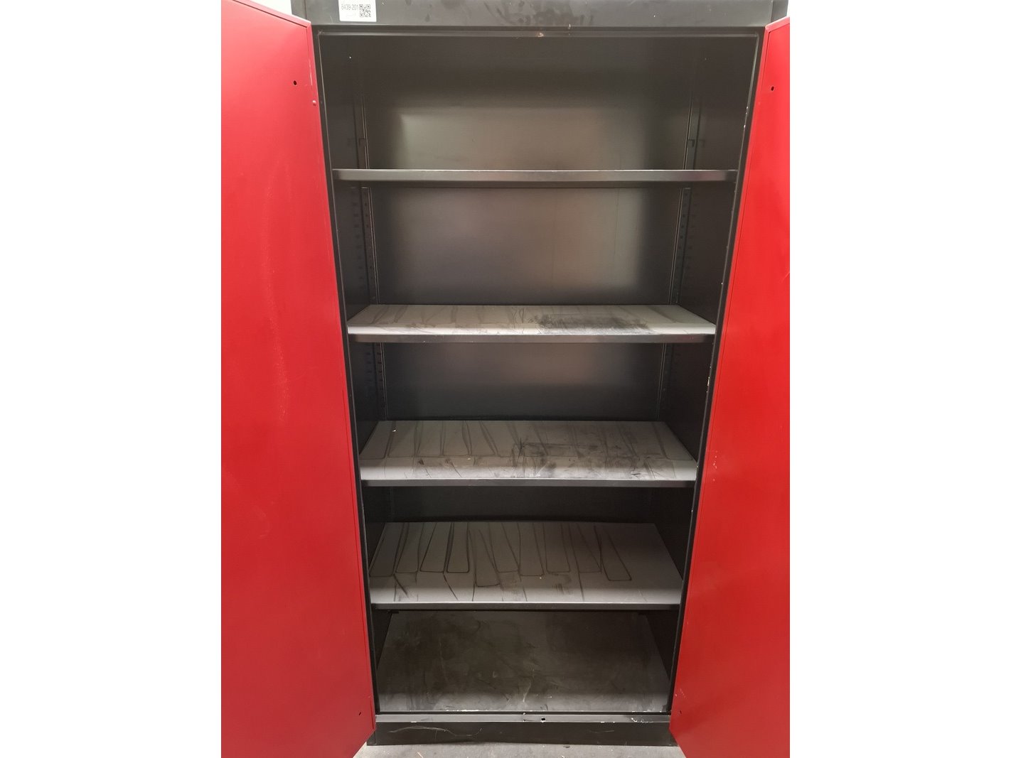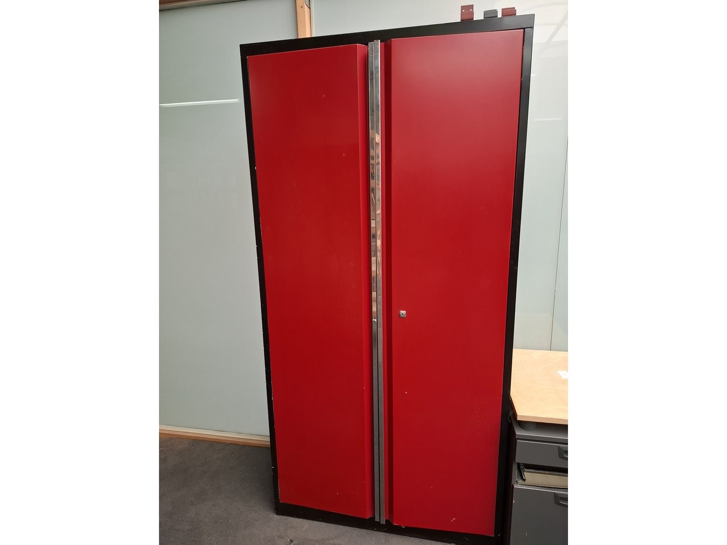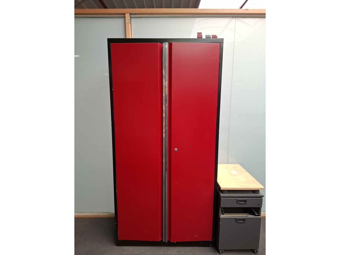 Product: Divers magazijn inventaris Specificaties: bestaande uit o.a. : 2x magazijnkast hxbxd ca. 195x95x45cm, exclusief sleutel stelling lxbxh ca. 397x52x125cm ladeblok, monitor steunen, toetsenborden, papier, etc.