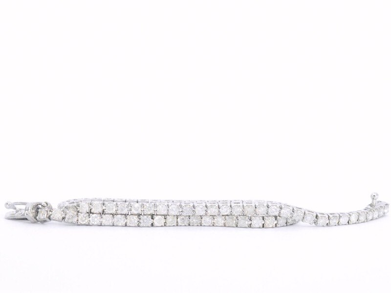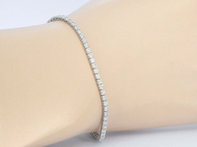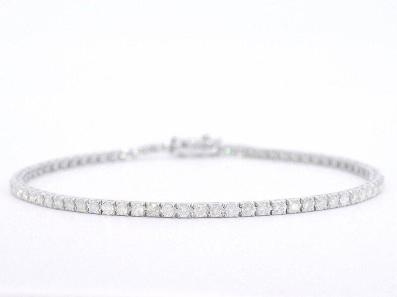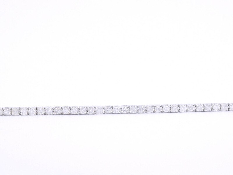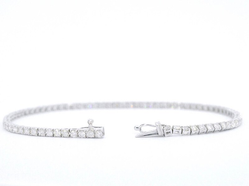 Product: Witgouden armband met diamanten 2.30 carat Specificaties: Diamant: Natuurlijk Aantal: 77 stuks Slijpvorm: Briljant geslepen Gewicht (carat): 2.30 carat Kleur: wit Zuiverheid: Met veel natuurlijke insluitsels Slijpkwaliteit: Goed Juweel: Armband Gewicht: 5 gram Afmetingen/lengte: 17.8 cm Materiaal: 14k goud (585) Conditie: Nieuw Verpakking: Luxe sieradendoos Toelichting: De kwaliteit is overgenomen van het rapport behorend bij item. De waardebepaling is een beoordeling van een gecertificeerde diamantair, gebaseerd op consumentenprijzen. Consumentenprijs: € 6.930,-