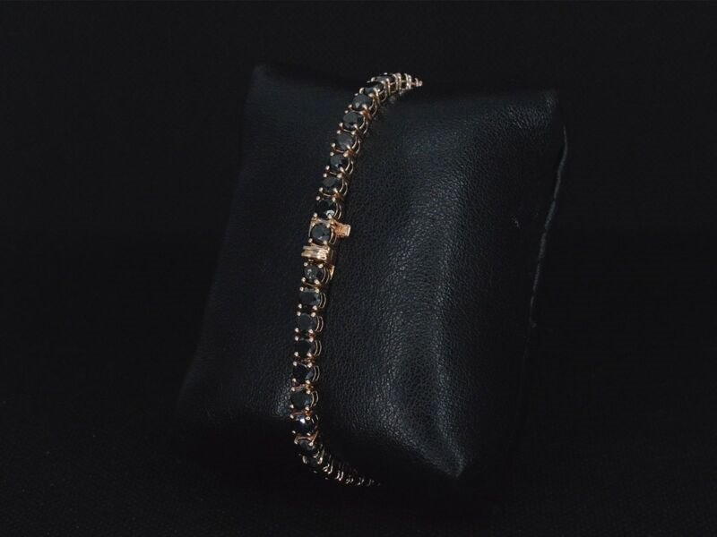 Product: Rosegouden armband met 16.00 carat zwarte Briljant geslepen diamanten Specificaties: Diamant: Natuurlijk Aantal: 47 stuks Slijpvorm: Briljant geslepen Gewicht (carat): 16.00 carat Kleur: Zwart (enhanced) Slijpkwaliteit: Zeer mooi Juweel: Armband Gewicht: 14 gram Afmetingen/lengte: 18 cm Materiaal: 14k goud (585) Conditie: Nieuw Verpakking: Luxe sieradendoos Toelichting: De kwaliteit is overgenomen van het rapport behorend bij item. De waardebepaling is een beoordeling van een gecertificeerde diamantair, gebaseerd op consumentenprijzen. Consumentenprijs: € 9.345,-