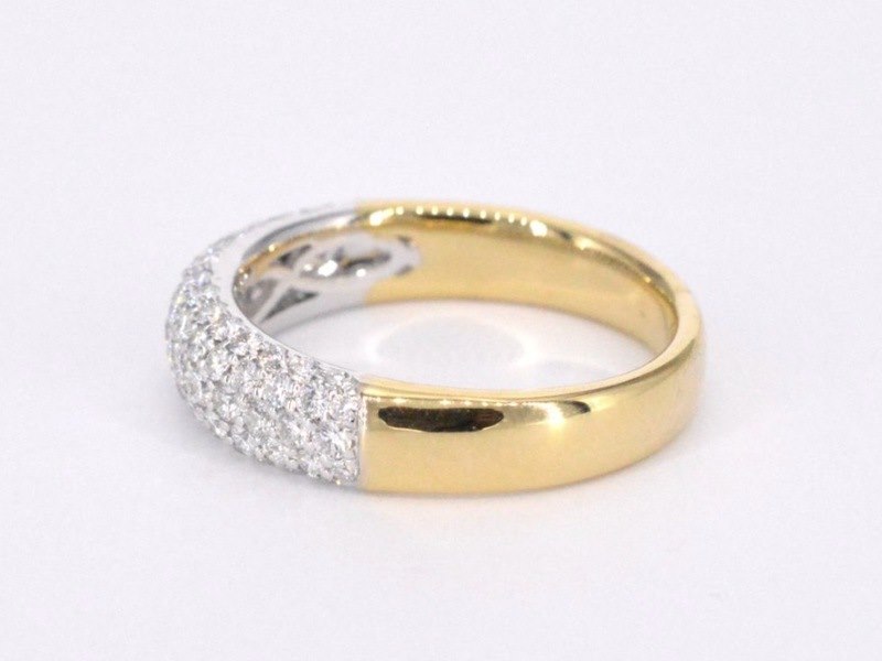 Product: Gouden pave ring met diamanten 0.90 carat Specificaties: Aantal: 77 stuks Slijpvorm: Briljant geslepen Gewicht (carat): 0.90 carat Kleur: F-G Zuiverheid: VS Slijpkwaliteit: Zeer mooi Juweel: Ring Gewicht: 5 gram Ringmaat (op maat gemaakt*): 53 (17 mm) Materiaal: 18K goud (750) Conditie: Nieuw Verpakking: Luxe sieradendoos Toelichting: De kwaliteit is overgenomen van het rapport behorend bij item. De waardebepaling is een beoordeling van een gecertificeerde diamantair, gebaseerd op consumentenprijzen. Consumentenprijs: € 6.930,-