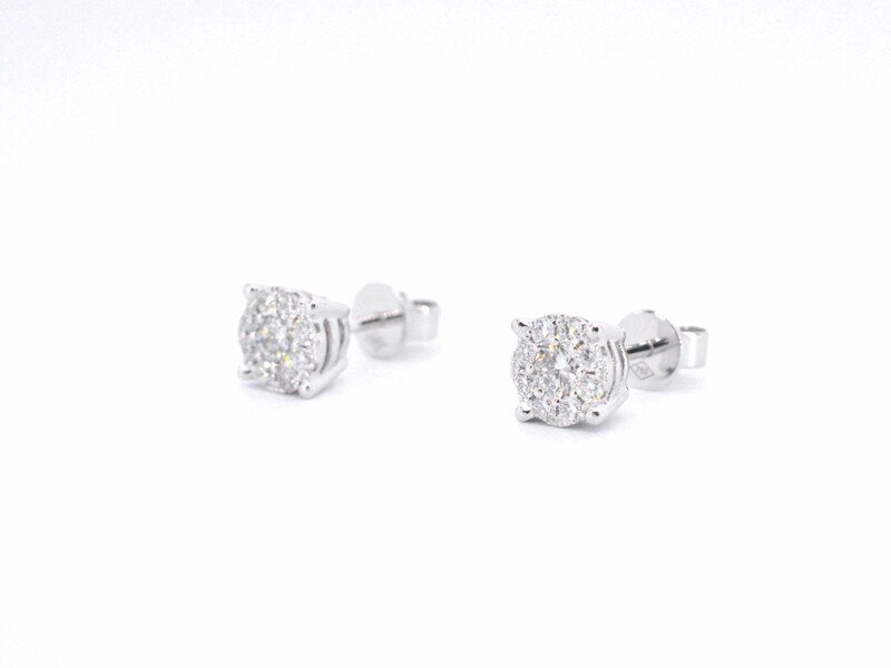 Product: Witgouden entourage oorbellen met diamanten Specificaties: Diamant: Natuurlijk Slijpvorm: Briljant geslepen Gewicht (carat): 0.67 carat Kleur: F-G Zuiverheid: VS Slijpkwaliteit: Zeer mooi Juweel: Oorbellen Gewicht: 2 gram Materiaal: 18K goud (750) Conditie: Nieuw Verpakking: Luxe sieradendoos Toelichting: De kwaliteit is overgenomen van het rapport behorend bij item. De waardebepaling is een beoordeling van een gecertificeerde diamantair, gebaseerd op consumentenprijzen. Consumentenprijs: € 5.863,-