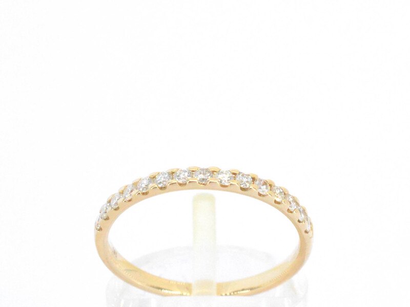 Product: Gouden ring met diamanten Specificaties: Diamant: Natuurlijk Aantal: 15 stuks Slijpvorm: Briljant geslepen Gewicht (carat): 0.30 carat Kleur: F-G Zuiverheid: VS-SI Slijpkwaliteit: Zeer mooi Juweel: Ring Gewicht: 1.5 gram Ringmaat (op maat gemaakt*): 53 (17 mm) Materiaal: 14 karaat (585) Conditie: Nieuw Verpakking: Luxe sieradendoos Toelichting: De kwaliteit is overgenomen van het rapport behorend bij item. De waardebepaling is een beoordeling van een gecertificeerde diamantair, gebaseerd op consumentenprijzen. Consumentenprijs: € 1.453,-
