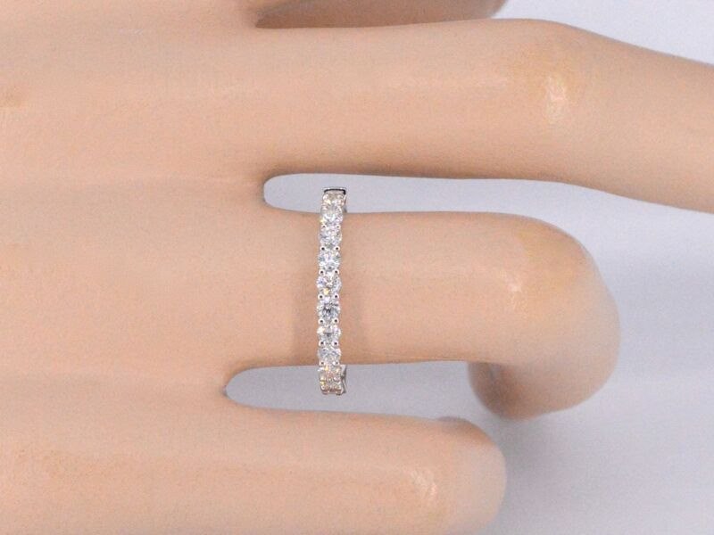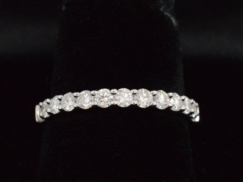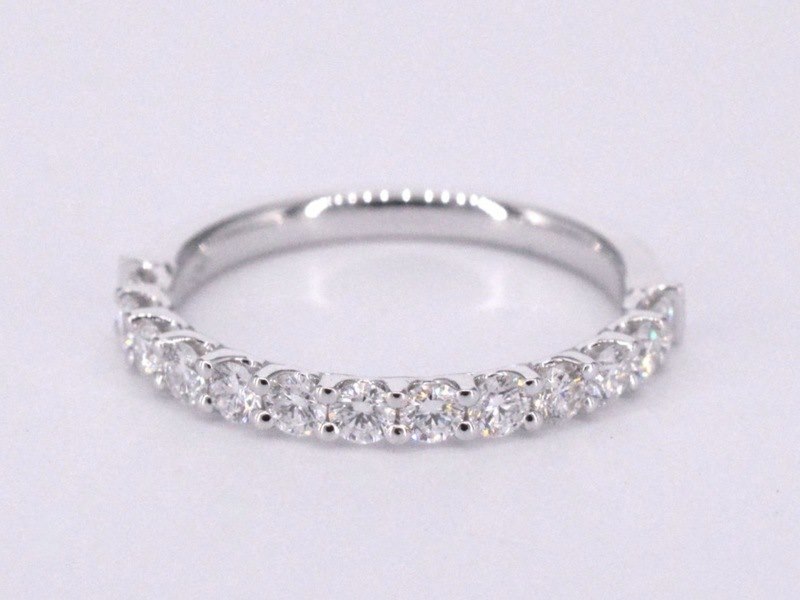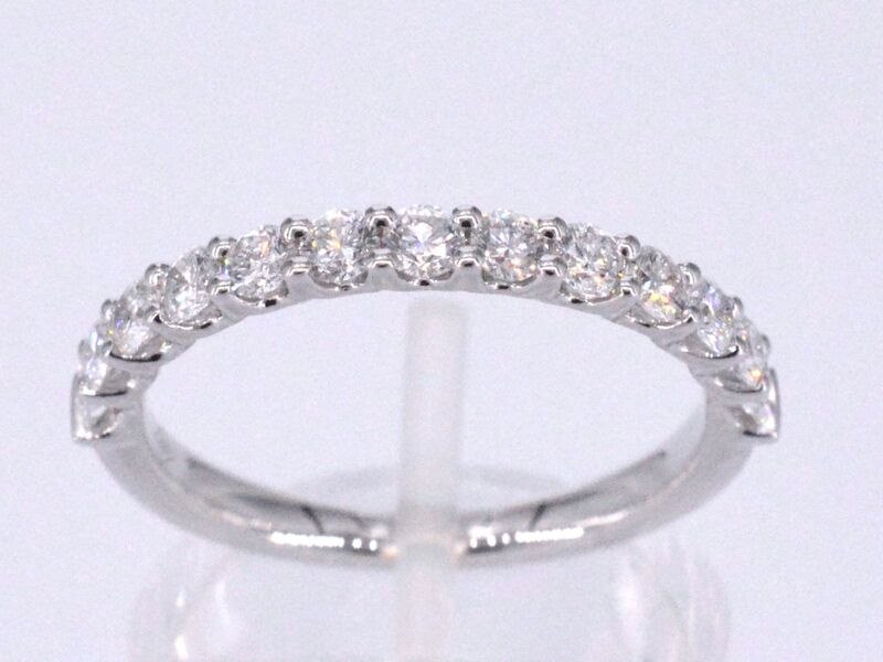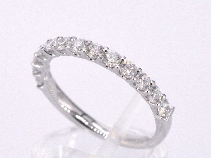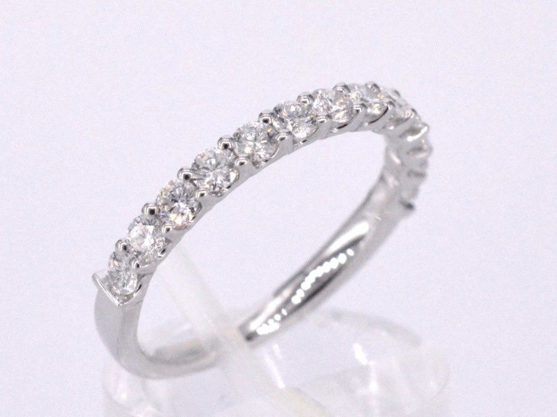 Product: Witgouden rijring bezet met briljant geslepen diamanten Specificaties: Aantal: 13 stuks Slijpvorm: Briljant geslepen Gewicht (carat): 0.75 carat Kleur: F-G Zuiverheid: VS Slijpkwaliteit: Zeer mooi Juweel: Ring Gewicht: 2.1 gram Ringmaat (op maat gemaakt*): 53 (17 mm) Materiaal: 18K goud (750) Conditie: Nieuw Verpakking: Luxe sieradendoos Toelichting: De kwaliteit is overgenomen van het rapport behorend bij item. De waardebepaling is een beoordeling van een gecertificeerde diamantair, gebaseerd op consumentenprijzen. Consumentenprijs: € 5.023,-