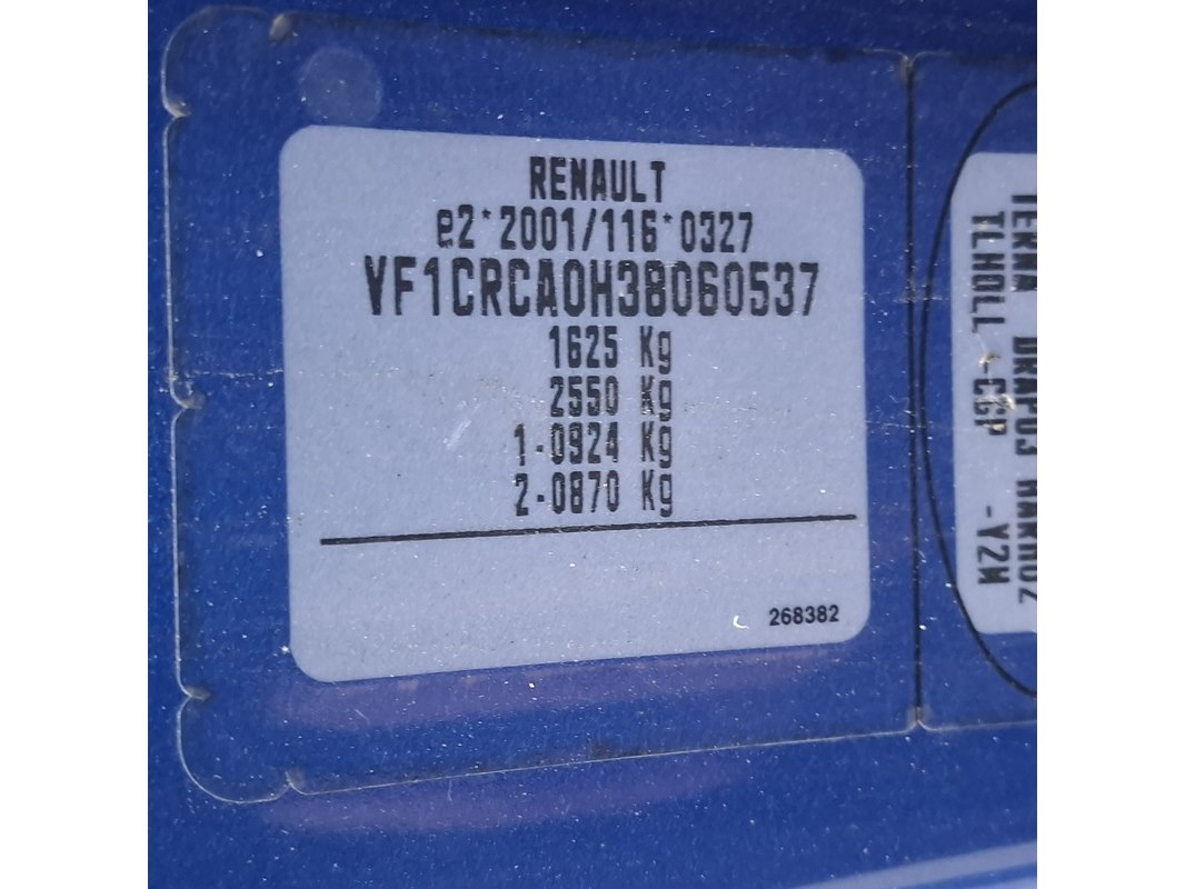 Merk: Renault Product: Personenauto BouwJaar: 2007 Conditie: gebruikt Specificaties: Kenteken: 23-XT-RF Eerste toelating nationaal: 28-09-2007 APK vervaldatum: 28-10-2025 Brandstof: Benzine Afgelezen tellerstand: 231.159 Transmissie: Handgeschakeld, 5 versnellingen Aantal sleutels: 1 VIN nummer: VF1CRCA0H38060537 Start: Ja, met booster Opties e.d. Elektrische ramen Elektrische spiegels Airconditioning Waargenomen gebreken Diverse gebruikssporen rondom Let op, remmen slecht