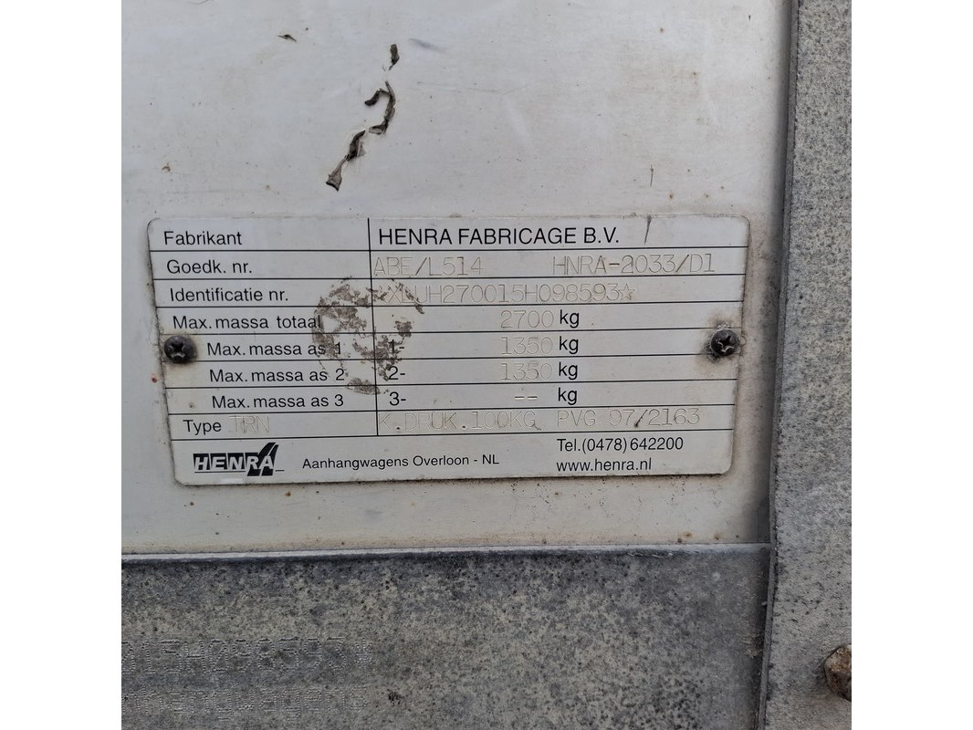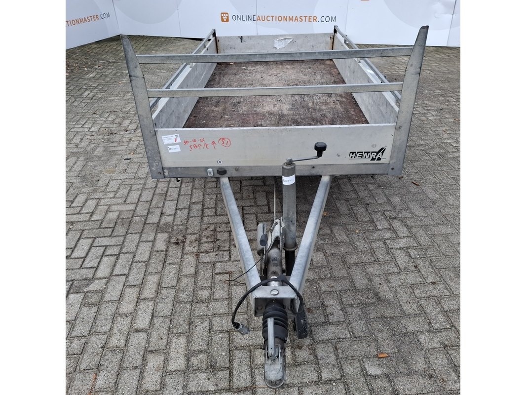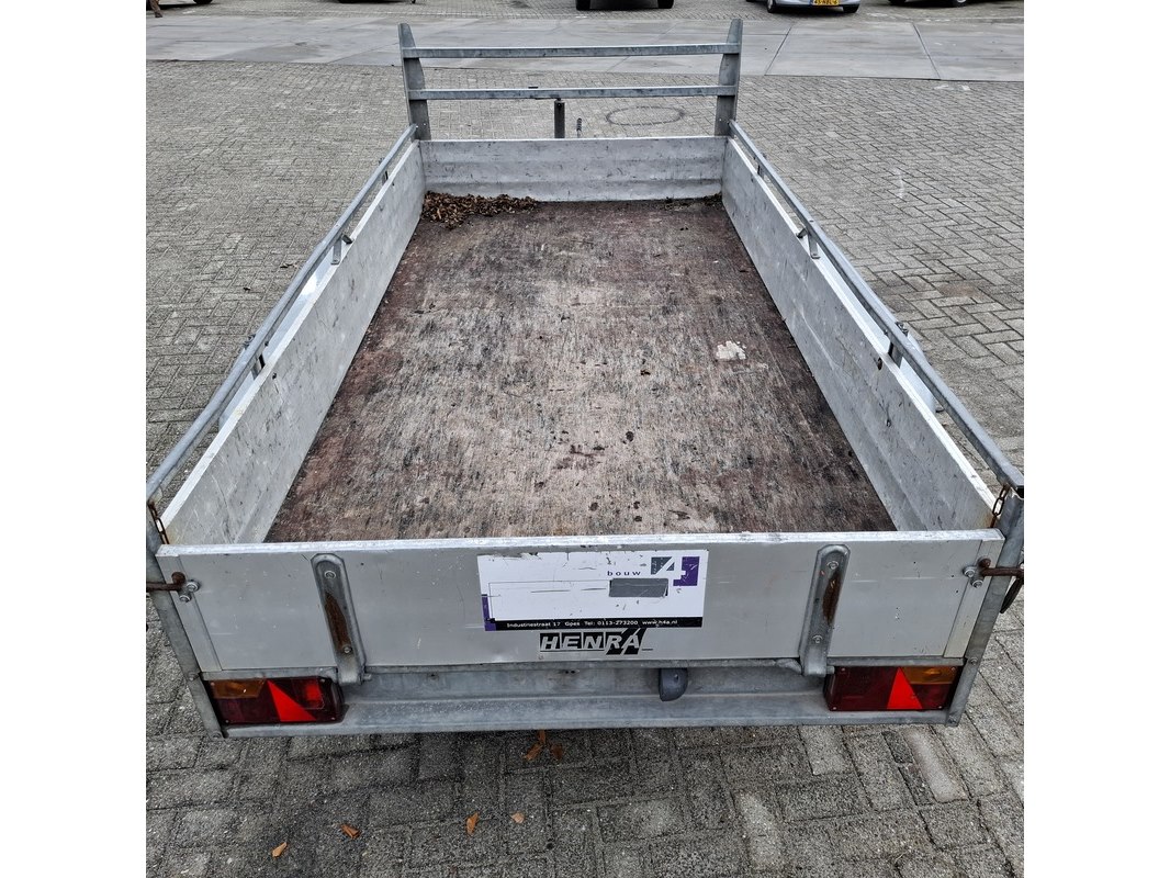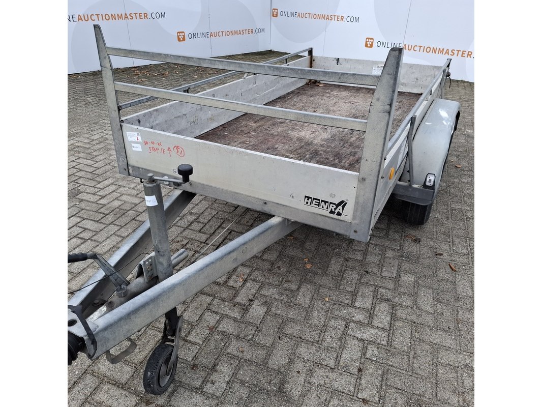 Merk: Henra Product: Geremde aanhanger Conditie: gebruikt Specificaties: Kenteken: Niet geregistreerd Afmetingen laadbak 300 x 150 cm GVW 2700 Kg RDW Keuring: voertuig kan worden toegelaten bouwjaar verklaring en door fabrikant getekende aanhangwagen kaart overleggen voertuig keurings klaar (toelating cat O2 1998) aanbieden. Goedkeuring op basis van Europe Typegoedkeuring