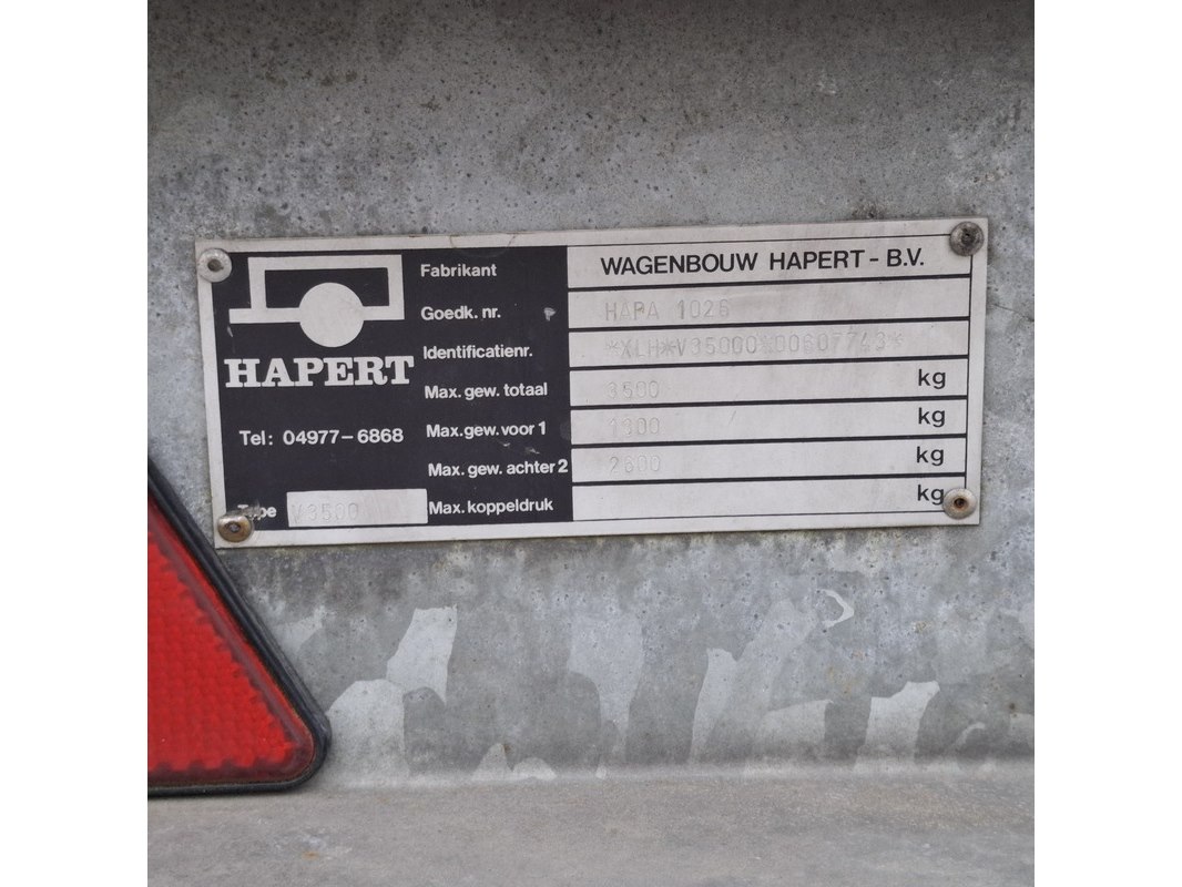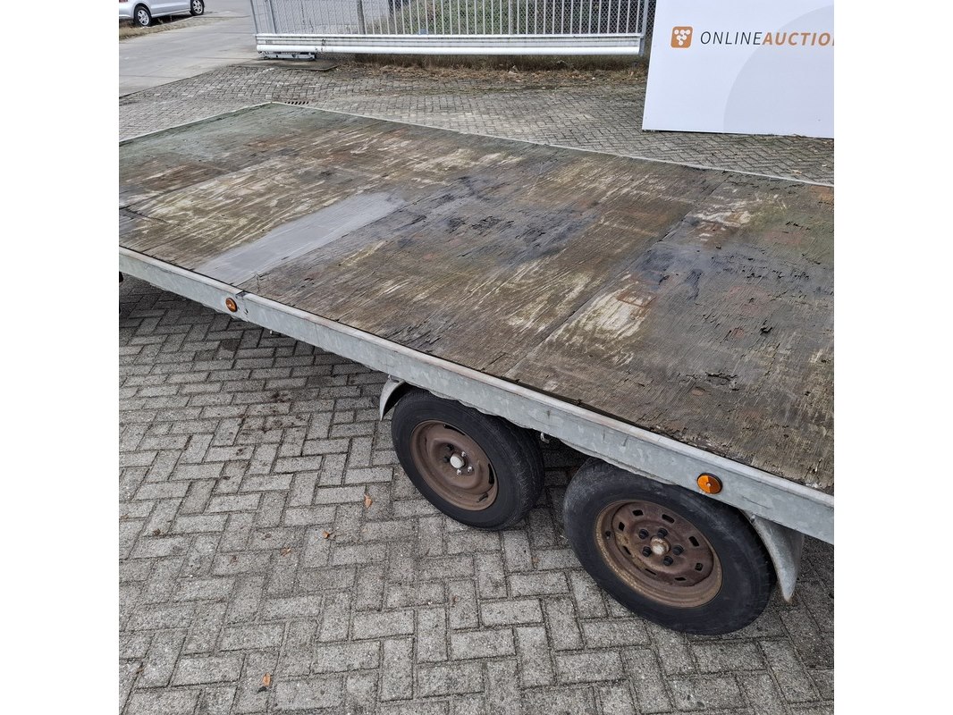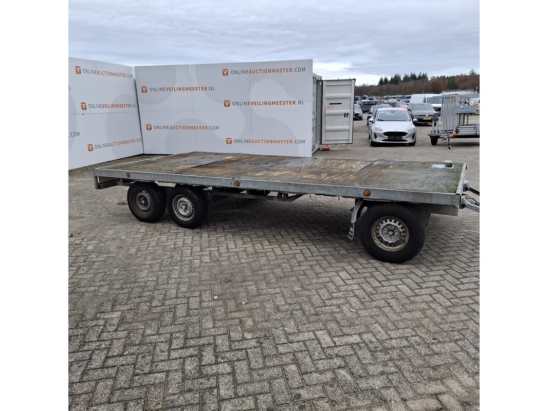 Merk: Hapert Product: Geremde plateauwagen Afmeting: LxB ca. 495 x 235 cm. Conditie: gebruikt Specificaties: Kenteken: Niet geregistreerd Afmetingen laadvlak circa 495 x 235 cm Bodemplaten rot Er dient een afspraak gemaakt te worden bij de RDW voor heractivering NL-kenteken