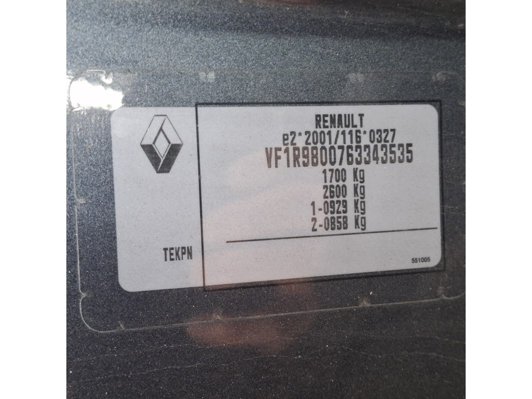 Merk: Renault Product: Personenauto Conditie: gebruikt Specificaties: Kenteken: Niet geregistreerd Eerste toelating nationaal: Onbekend APK vervaldatum: Onbekend Brandstof: Diesel Afgelezen tellerstand: 66.021 Transmissie: Handgeschakeld, 5 versnellingen Aantal sleutels: 1 VIN nummer: VF1R9800763343535 Start: Ja Opties e.d. Elektrische ramen Elektrische spiegels Radio Cruise control Airconditioning Waargenomen gebreken Gebruikerssporen rondom DOM 51 van toepassing. Cvo aanwezig.