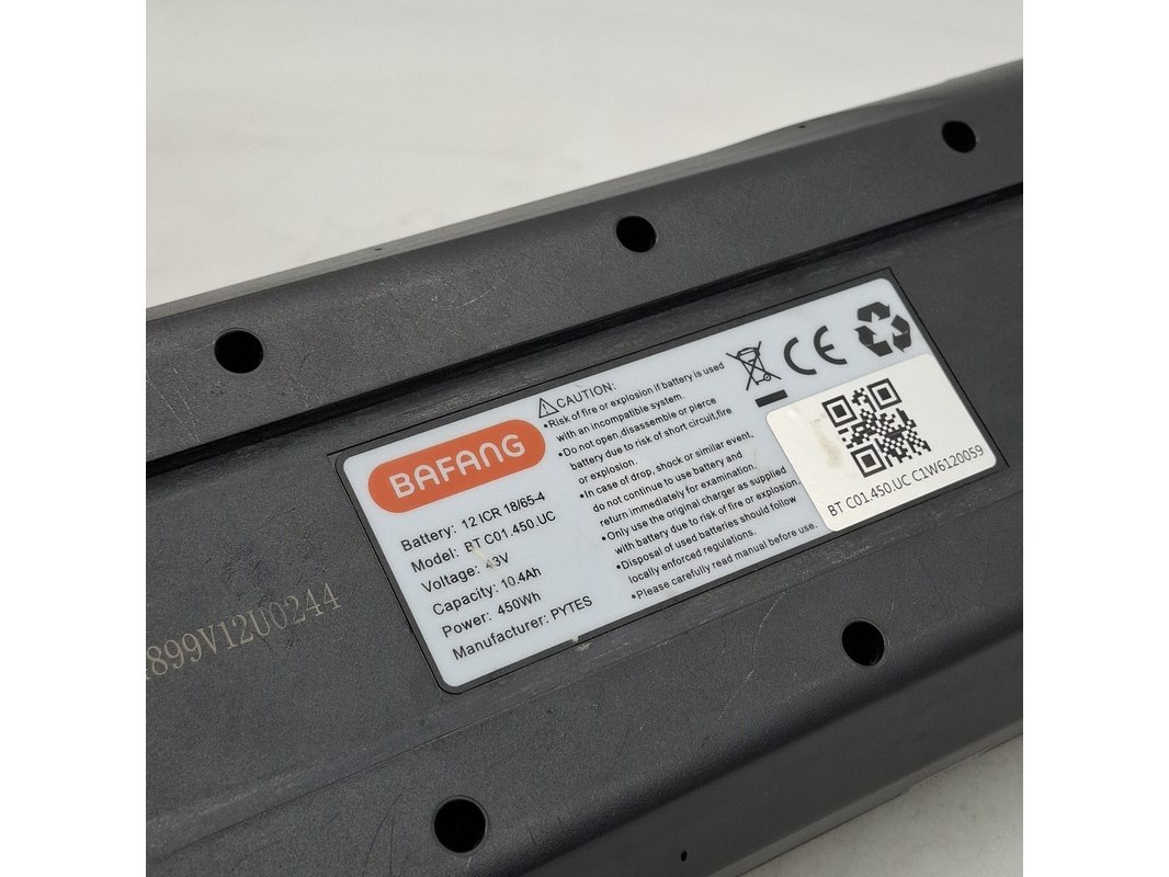 Merk: Bafang Product: Fiets accu Conditie: gebruikt Specificaties: 10,4 Ah 450 Wh Exclusief acculader