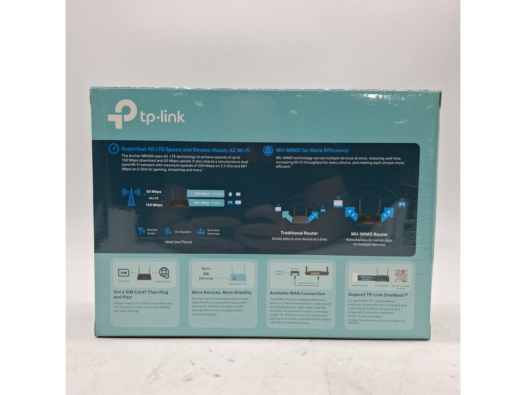 Merk: TP-Link Product: Router Specificaties: Archer MR400 Doosje is geseald.