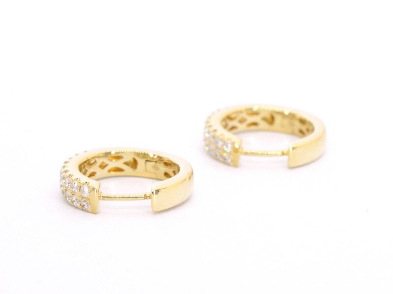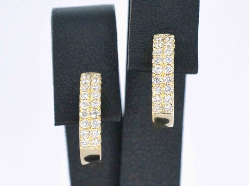 Product: Gouden creolen met twee rijen diamanten Specificaties: Diamant: Natuurlijk Aantal: 36 stuks Slijpvorm: Briljant geslepen Gewicht (carat): 0.60 carat Kleur: F-G Zuiverheid: VS Slijpkwaliteit: Zeer mooi Juweel: Oorbellen Gewicht: 5.2 gram Afmetingen/lengte: 16 x 3 mm Materiaal: 18K goud (750) Conditie: Nieuw Verpakking: Luxe sieradendoos Toelichting: De kwaliteit is overgenomen van het rapport behorend bij item. De waardebepaling is een beoordeling van een gecertificeerde diamantair, gebaseerd op consumentenprijzen. Consumentenprijs: € 6.195,-