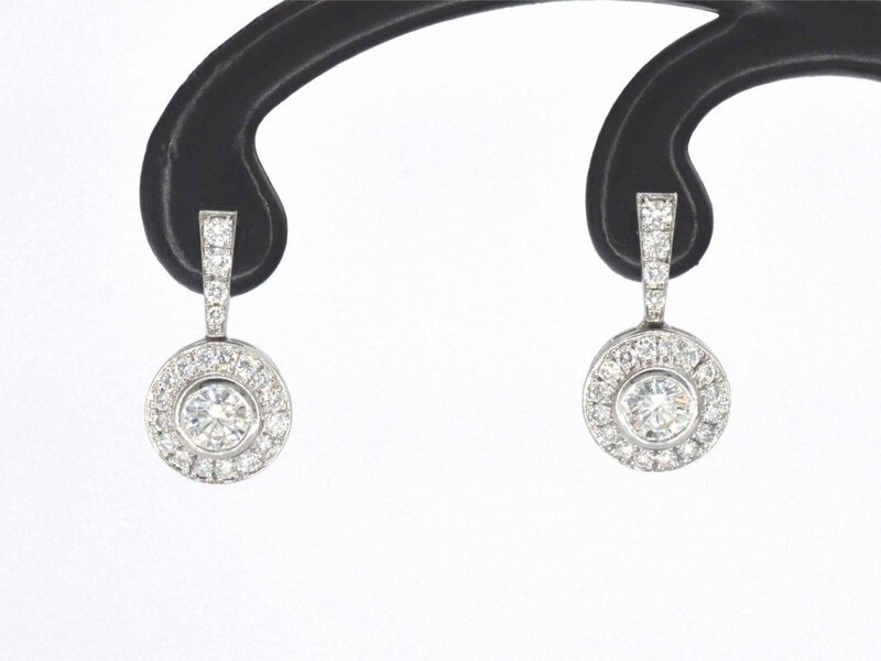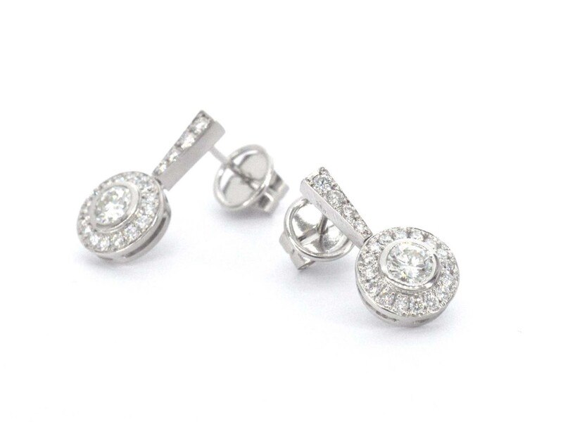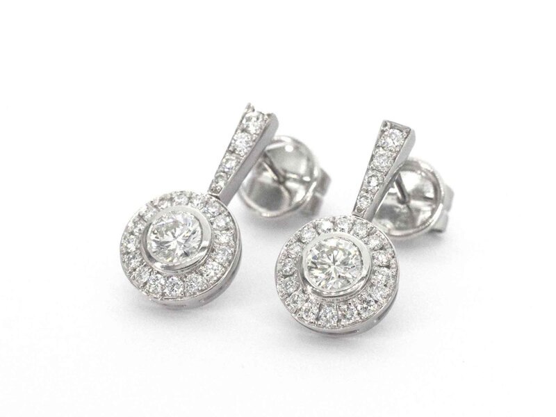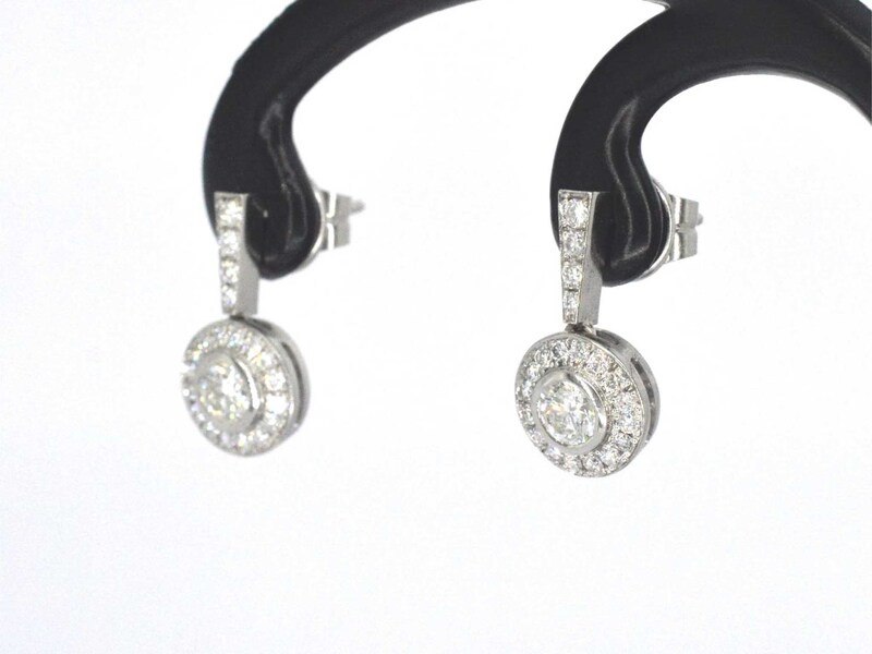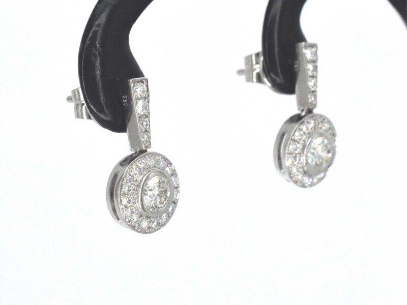 Product: Art-deco oorbellen met diamanten Specificaties: Diamant: Natuurlijk Aantal: 2 stuks Slijpvorm: Briljant geslepen Gewicht (carat): 0.80 carat Kleur: H Zuiverheid: VVS Slijpkwaliteit: Zeer mooi Diamant (secundair): Diamanten Aantal diamanten: 40 stuks Slijpvorm: Briljant geslepen Gewicht (carat): 0.80 carat Kleur: F Zuiverheid: VVS Slijpkwaliteit: Zeer mooi Juweel: Oorbellen Gewicht: 4.3 gram Materiaal: 18k goud (750) Conditie: Zo goed als nieuw Verpakking: Luxe sieradendoos Toelichting: De kwaliteit is overgenomen van het rapport behorend bij item. De waardebepaling is een beoordeling van een gecertificeerde diamantair, gebaseerd op consumentenprijzen. Consumentenprijs: € 12.000,-