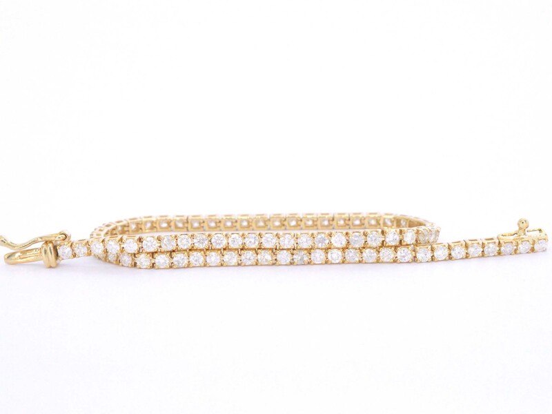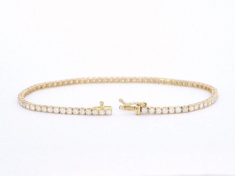 Product: Gouden armband met diamanten 2.30 carat Specificaties: Diamant: Natuurlijk Aantal: 77 stuks Slijpvorm: Briljant geslepen Gewicht (carat): 2.30 carat Kleur: wit Zuiverheid: Met veel natuurlijke insluitsels Slijpkwaliteit: Goed Juweel: Armband Gewicht: 5 gram Afmetingen/lengte: 17.8 cm Materiaal: 14k goud (585) Conditie: Nieuw Verpakking: Luxe sieradendoos Toelichting: De kwaliteit is overgenomen van het rapport behorend bij item. De waardebepaling is een beoordeling van een gecertificeerde diamantair, gebaseerd op consumentenprijzen. Consumentenprijs: € 6.930,-