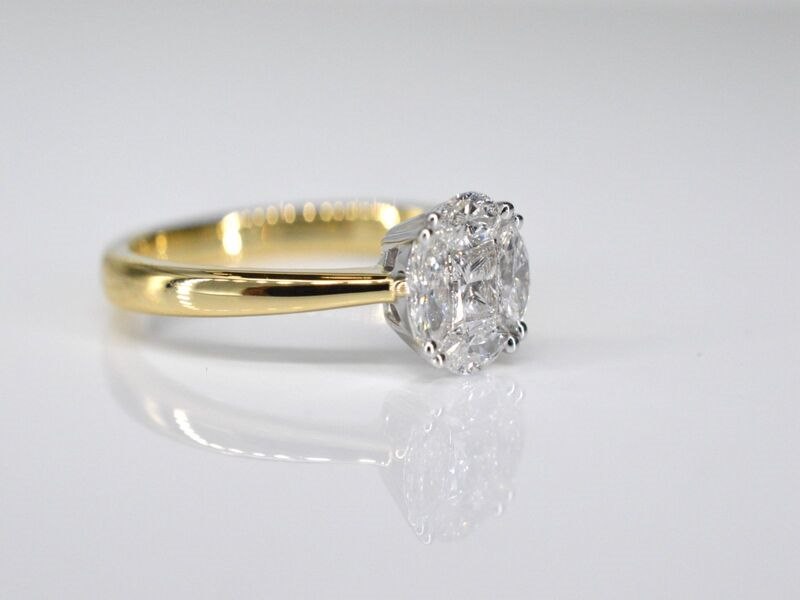 Product: Gouden ring met prinses en marquise geslepen natuurlijke diamanten Specificaties: Diamant: Natuurlijk Slijpvorm: Prinses en marquise geslepen Gewicht (carat): 0.60 carat Kleur: F-G Zuiverheid: VS Slijpkwaliteit: Zeer mooi Juweel: Ring Gewicht: 3 gram Ringmaat (op maat gemaakt*): 53 (17 mm) Materiaal: 18K goud (750) Conditie: Nieuw Verpakking: Luxe sieradendoos Toelichting: De kwaliteit is overgenomen van het rapport behorend bij item. De waardebepaling is een beoordeling van een gecertificeerde diamantair, gebaseerd op consumentenprijzen. Consumentenprijs: € 6.300,-