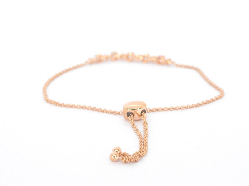 Product: Rosegouden armband met diamanten Specificaties: Diamant: Natuurlijk Aantal: 5 stuks Slijpvorm: Briljant geslepen Gewicht (carat): 0.20 carat Kleur: F-G Zuiverheid: VS Slijpkwaliteit: Zeer mooi Juweel: Armband Gewicht: 2.7 gram Afmetingen/lengte: maximaal 19 cm (verstelbaar mechanisme) Materiaal: 18K goud (750) Conditie: Nieuw Verpakking: Luxe sieradendoos Toelichting: De kwaliteit is overgenomen van het rapport behorend bij item. De waardebepaling is een beoordeling van een gecertificeerde diamantair, gebaseerd op consumentenprijzen. Consumentenprijs: € 3.150,-