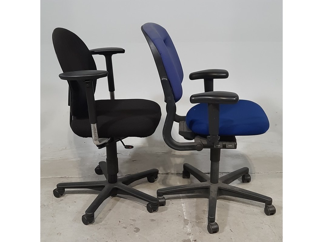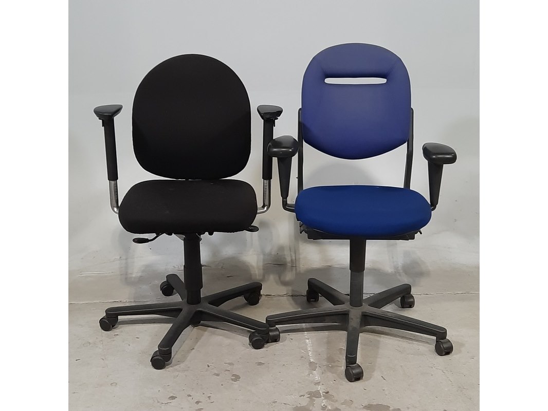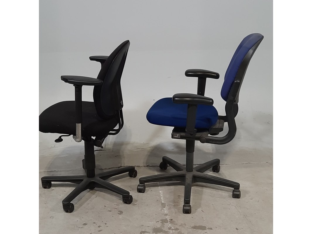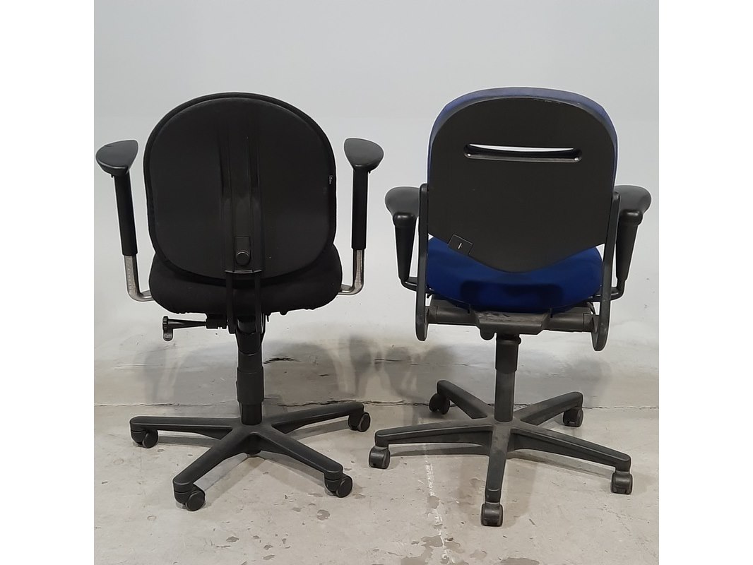 Merk: o.a. drabert Product: Bureaustoel Afmeting: Diverse maten Conditie: gebruikt Specificaties: De stoelen hebben diverse beschadigingen.