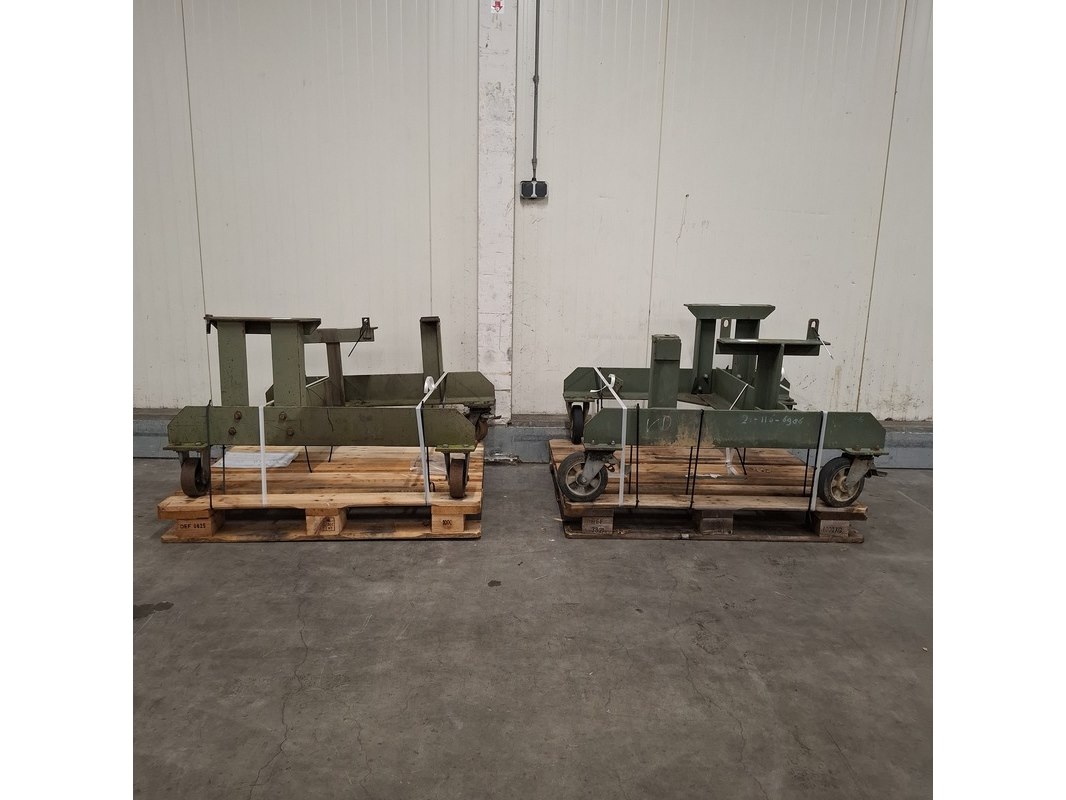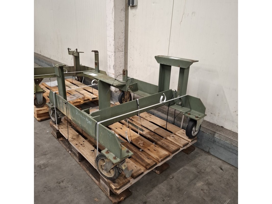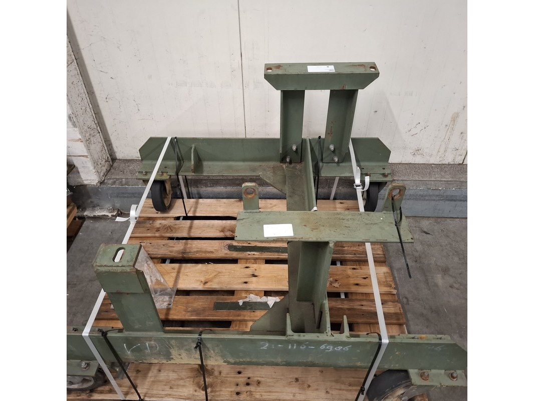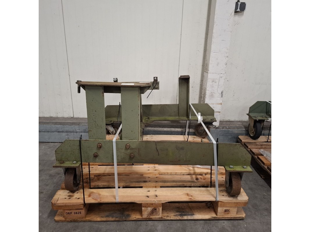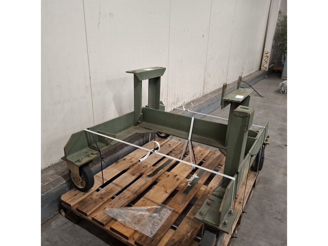 Product: Verrijdbare motorbok Afmeting: LxB ca. 117x105 cm. Specificaties: Technische staat en compleetheid onbekend. Exclusief pallets.