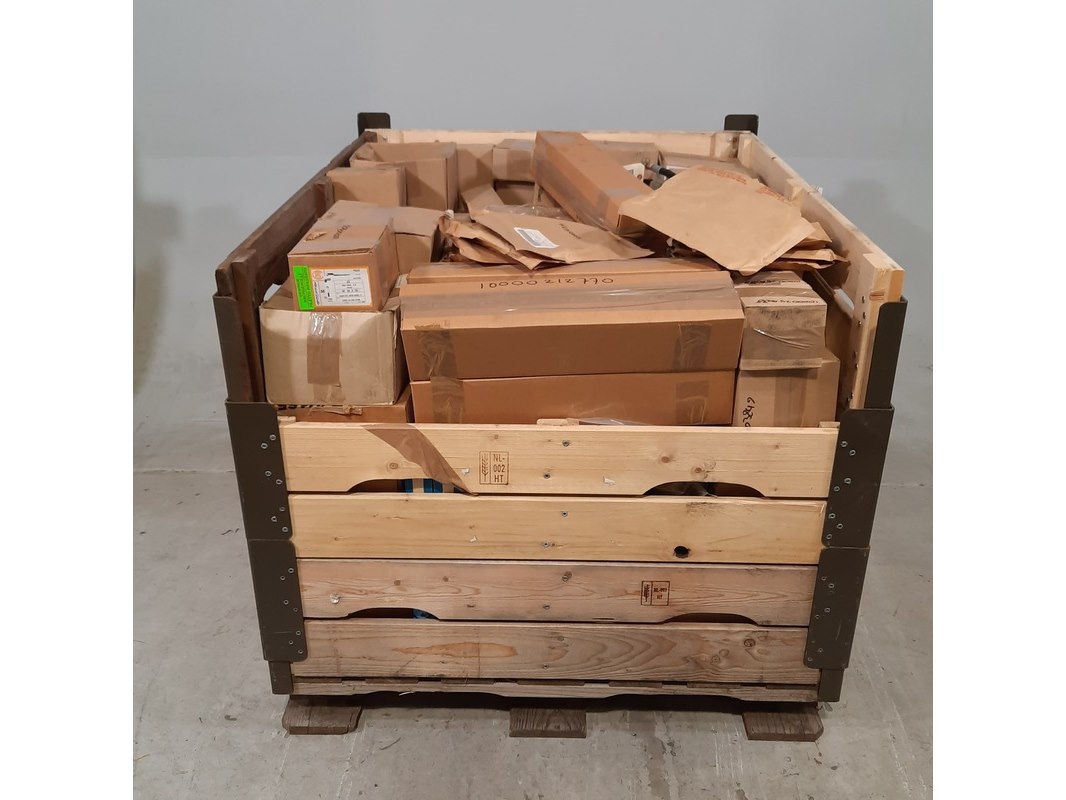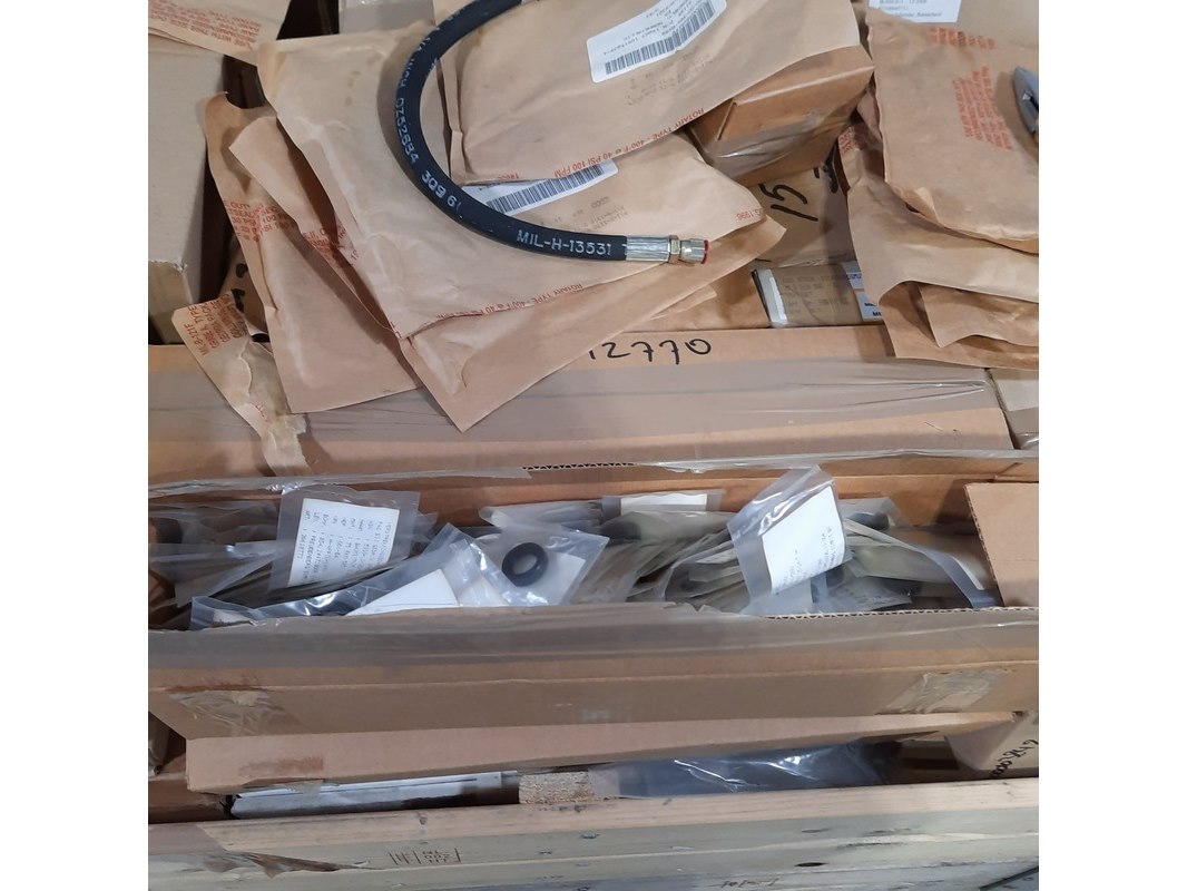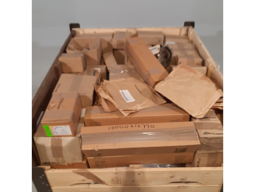 Product: Diverse onderdelen en ijzerwaren Specificaties: Bestaande uit o.a. Hydraulische slang, verbindingsring, slotpen, DAF contactblok etc. Technische staat en compleetheid onbekend. Exclusief palletkist.