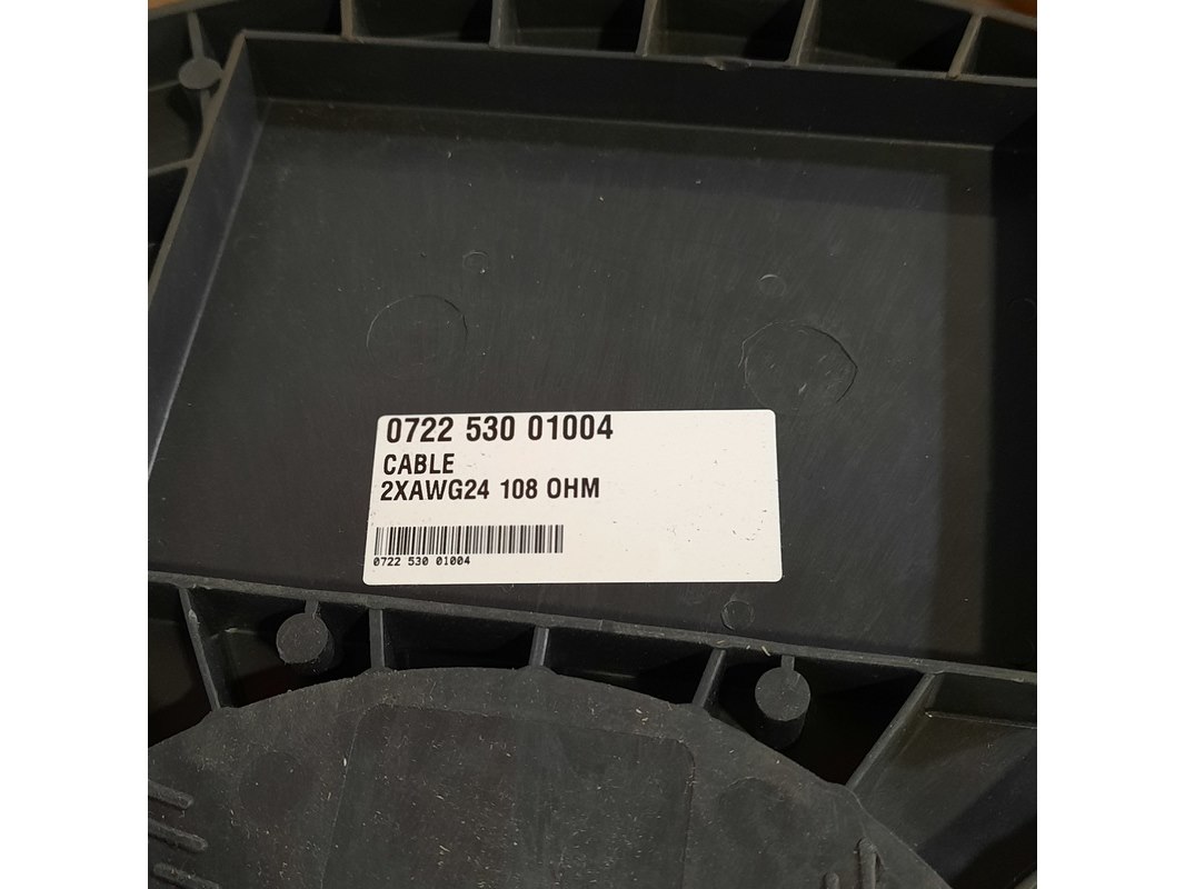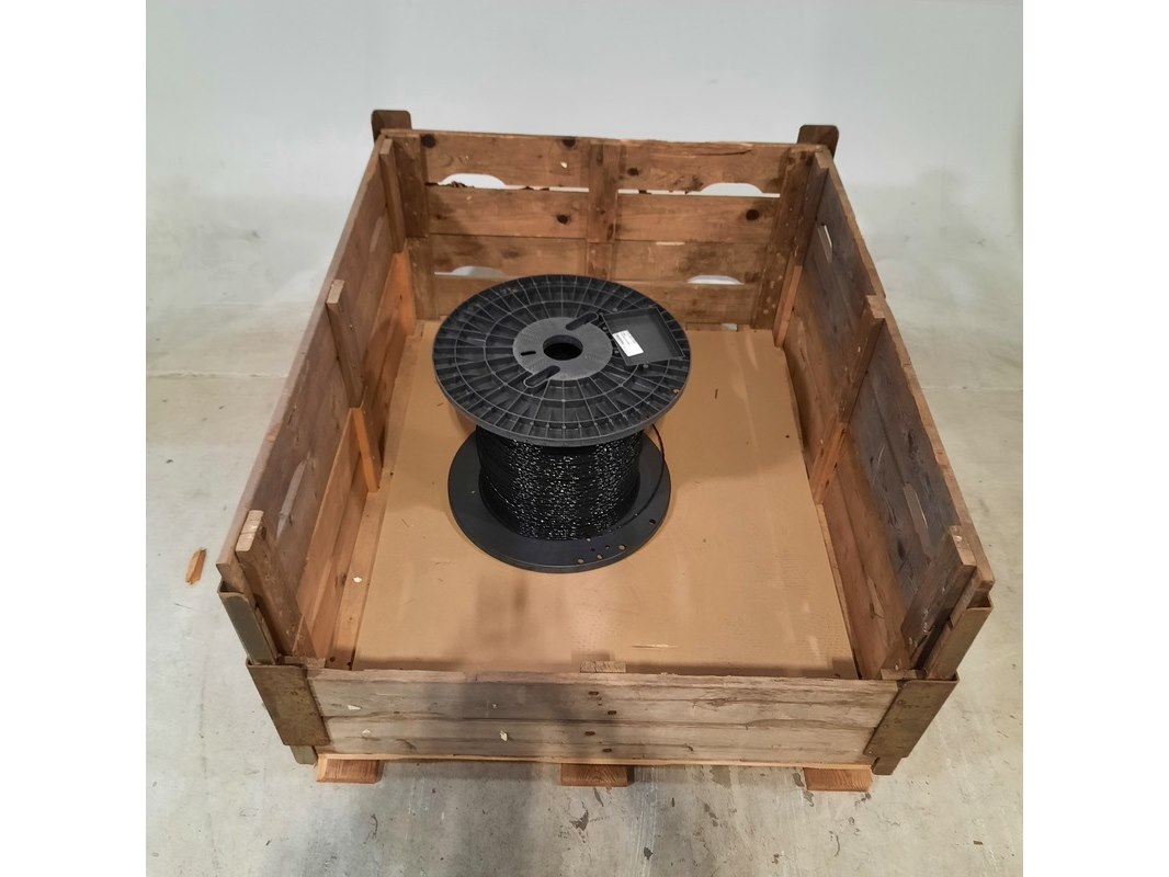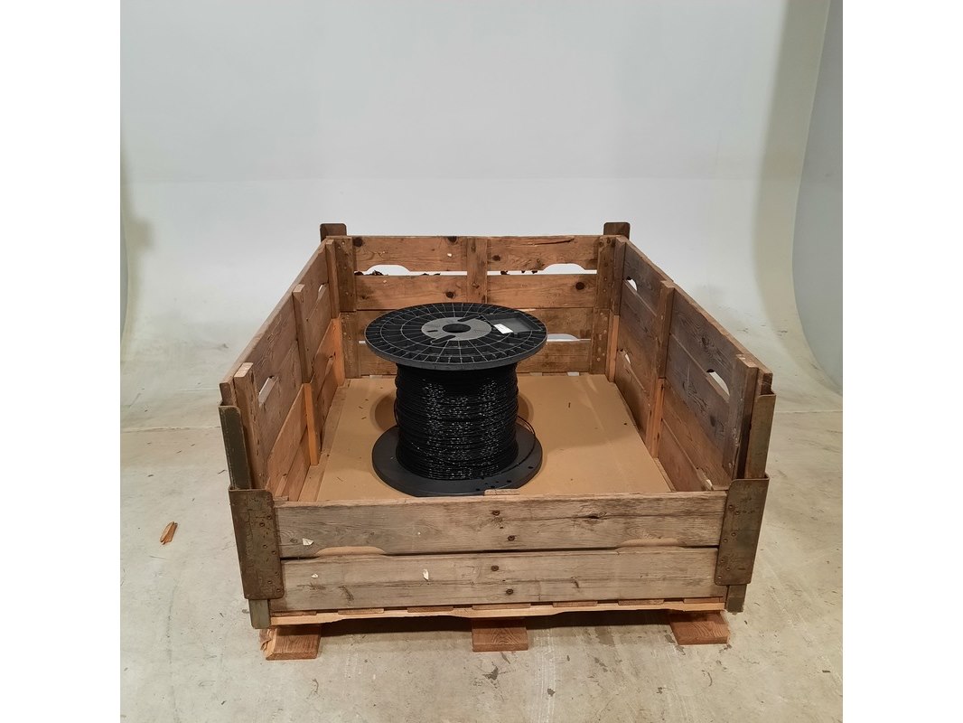 Product: Kabel op kunstof haspel Afmeting: Lxb ca. 38x48 cm Specificaties: Technische staat en compleetheid onbekend. Exclusief palletkist.