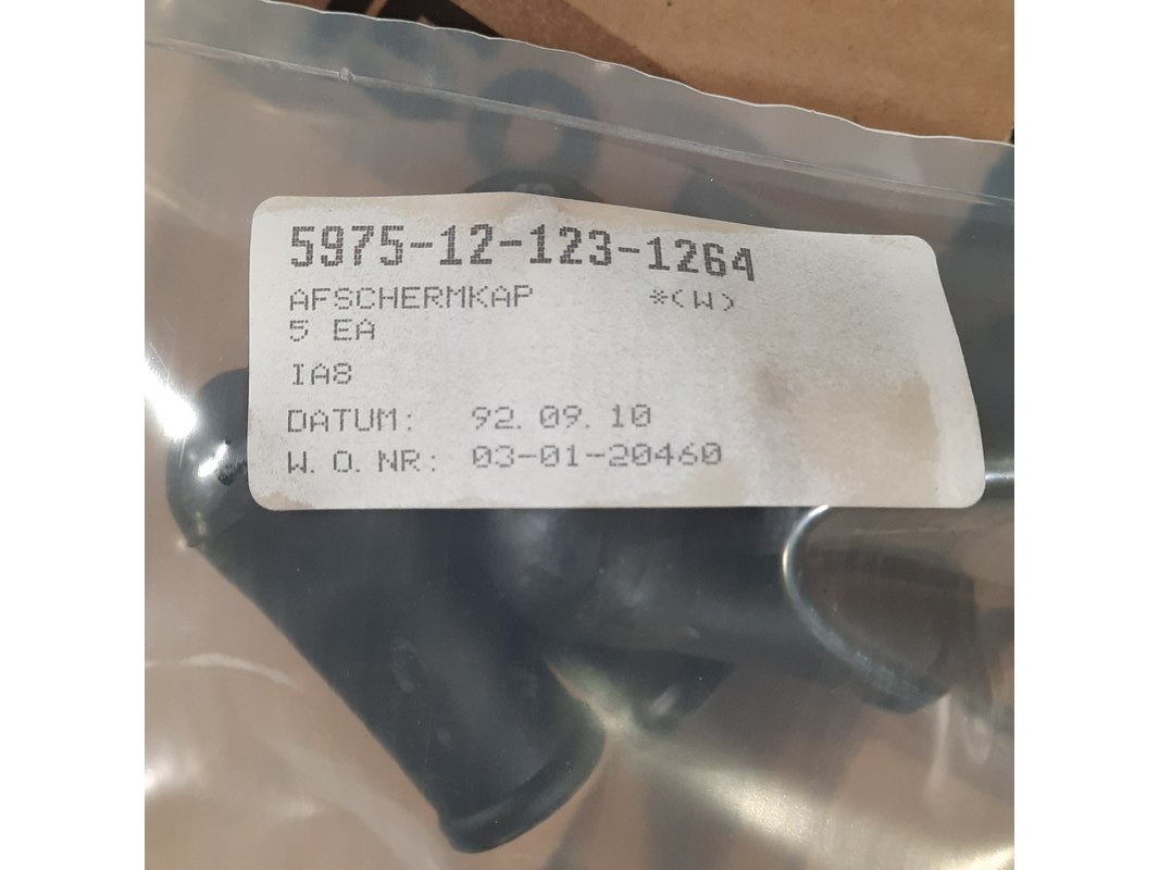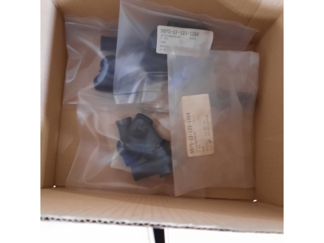 Product: Partij rubberen afschermkappen Afmeting: lengte ca. 6,5 cm Specificaties: NSN 5975-12-123-1264 Technische staat en compleetheid onbekend. Exclusief palletkist.