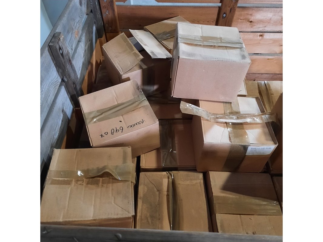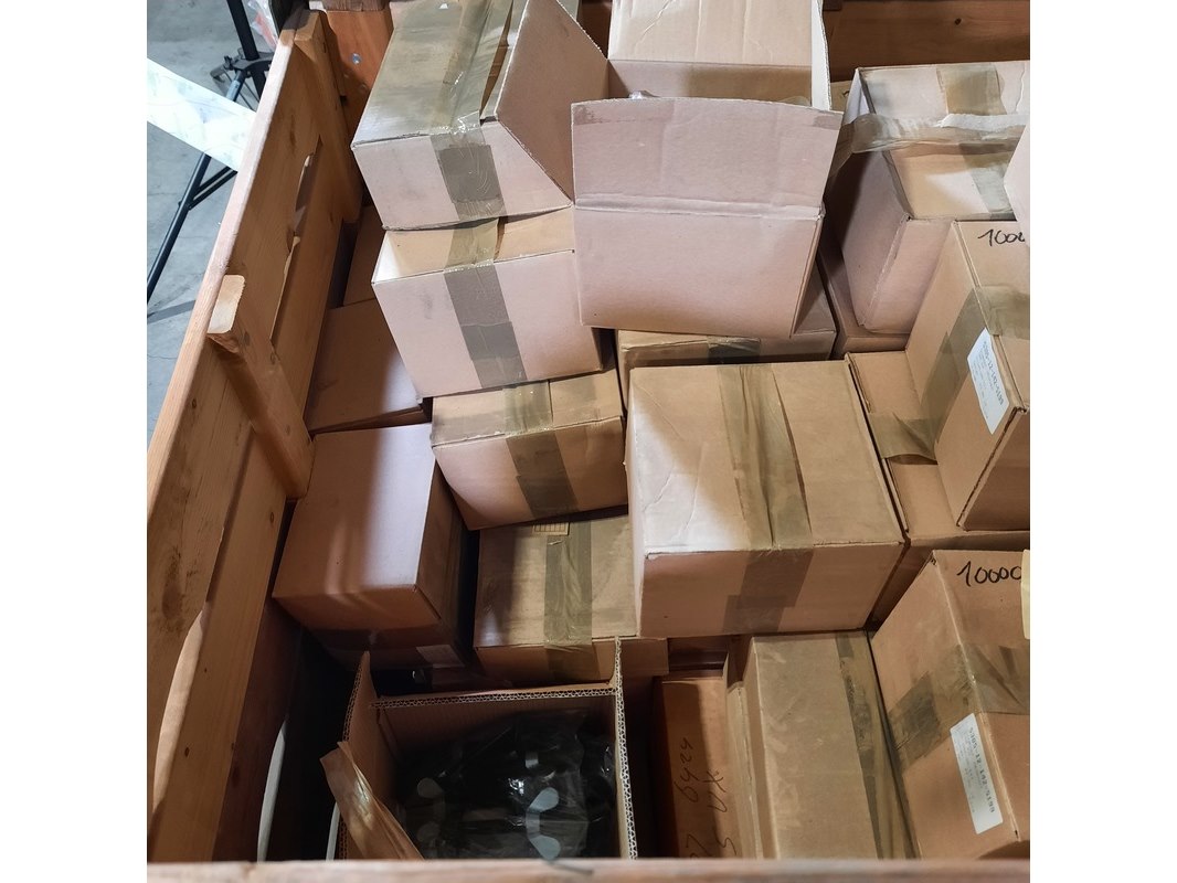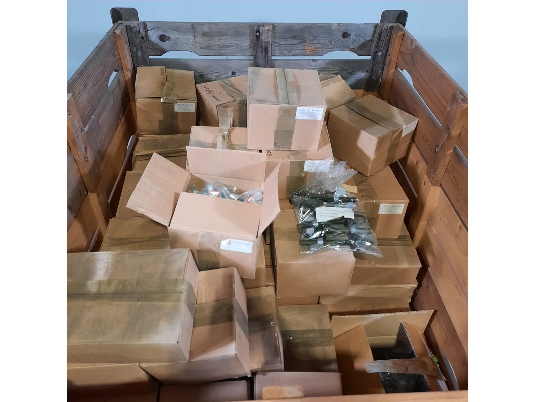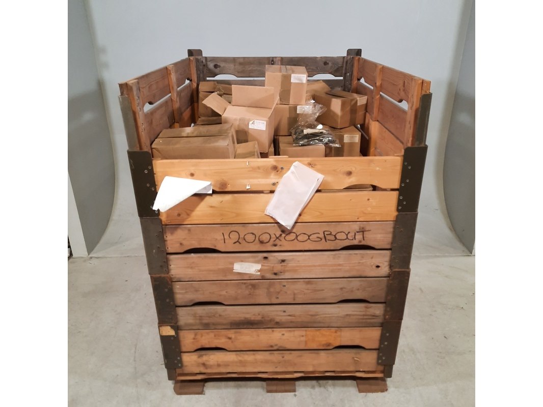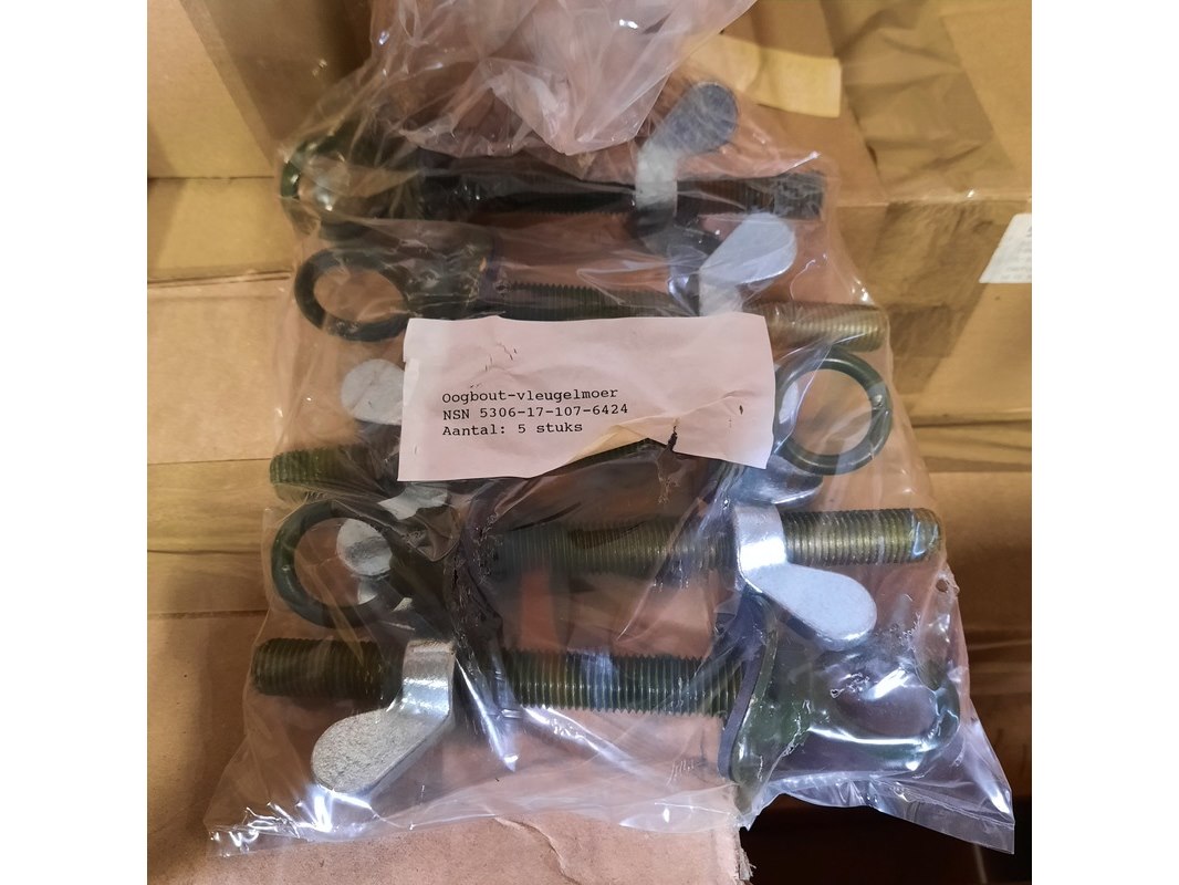 Product: Diverse ijzerwaren Specificaties: Bestaande uit o.a. schroef zeskant, oogbout met vleugelmoer, etc Technische staat en compleetheid onbekend. Exclusief palletkist.