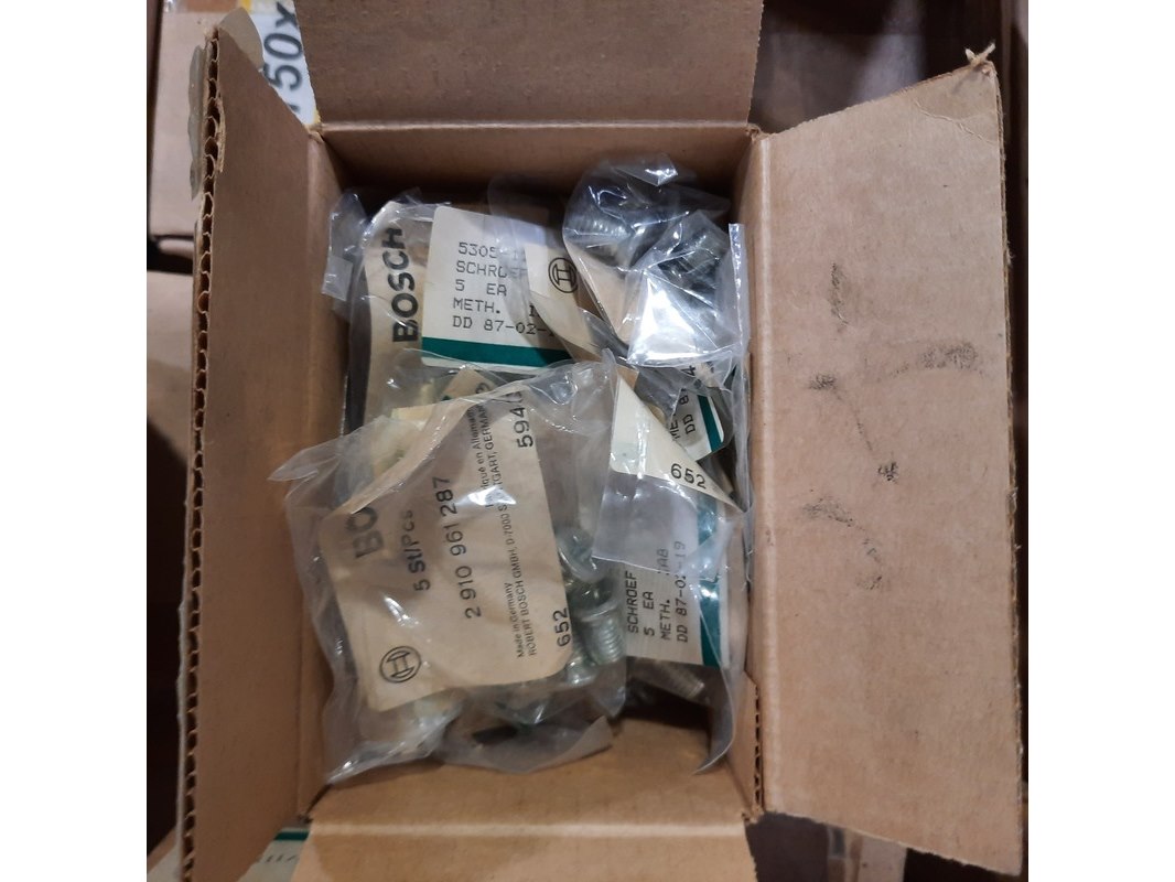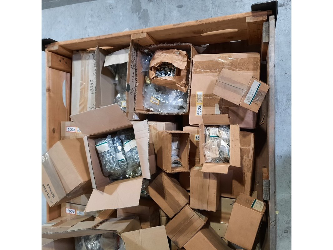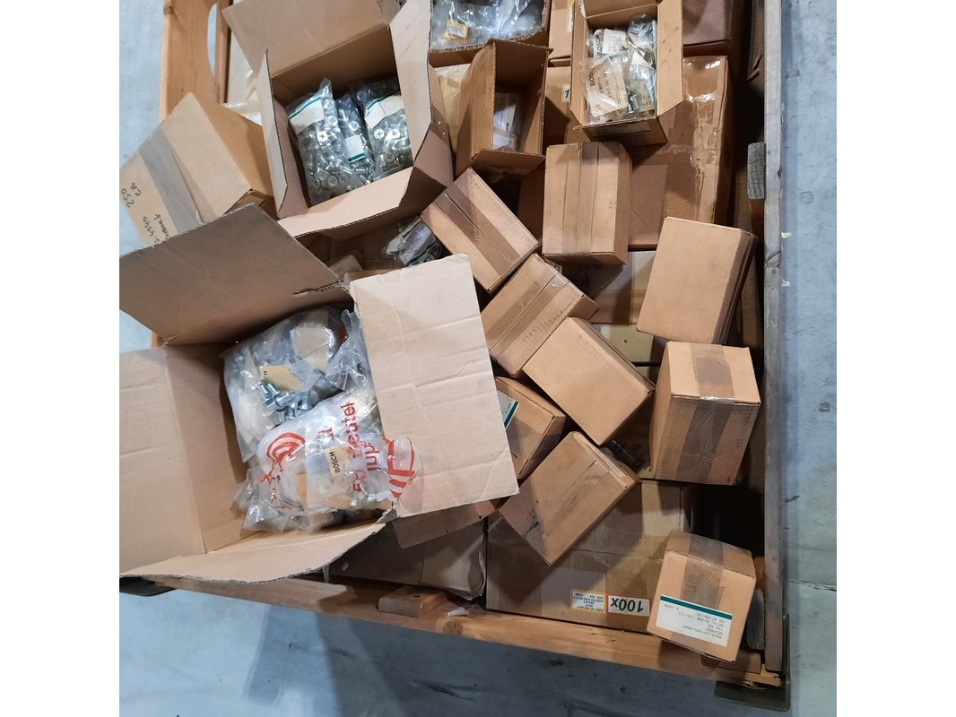 Merk: o.a. Bosch Product: Diverse ijzerwaren Specificaties: Bestaande uit o.a. schroeven en bouten Technische staat en compleetheid onbekend. Exclusief palletkist.