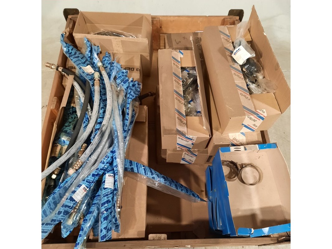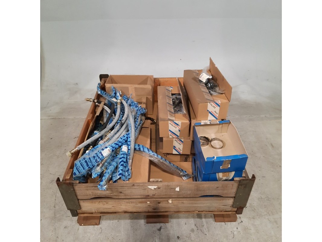 Merk: O.a. DAF Product: Partij diverse onderdelen Specificaties: BEstaande uit o.a. diverse slangen, slangklemmen, bochtstukken etc. Technische staat en compleetheid onbekend. Exclusief palletkist.