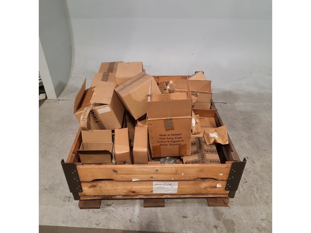 Product: Partij diverse onderdelen Specificaties: Bestaande uit o.a. Tapbouten, pijpstukken, pakkingen, zekeringen etc. Technische staat en compleetheid onbekend. Exclusief palletkist.