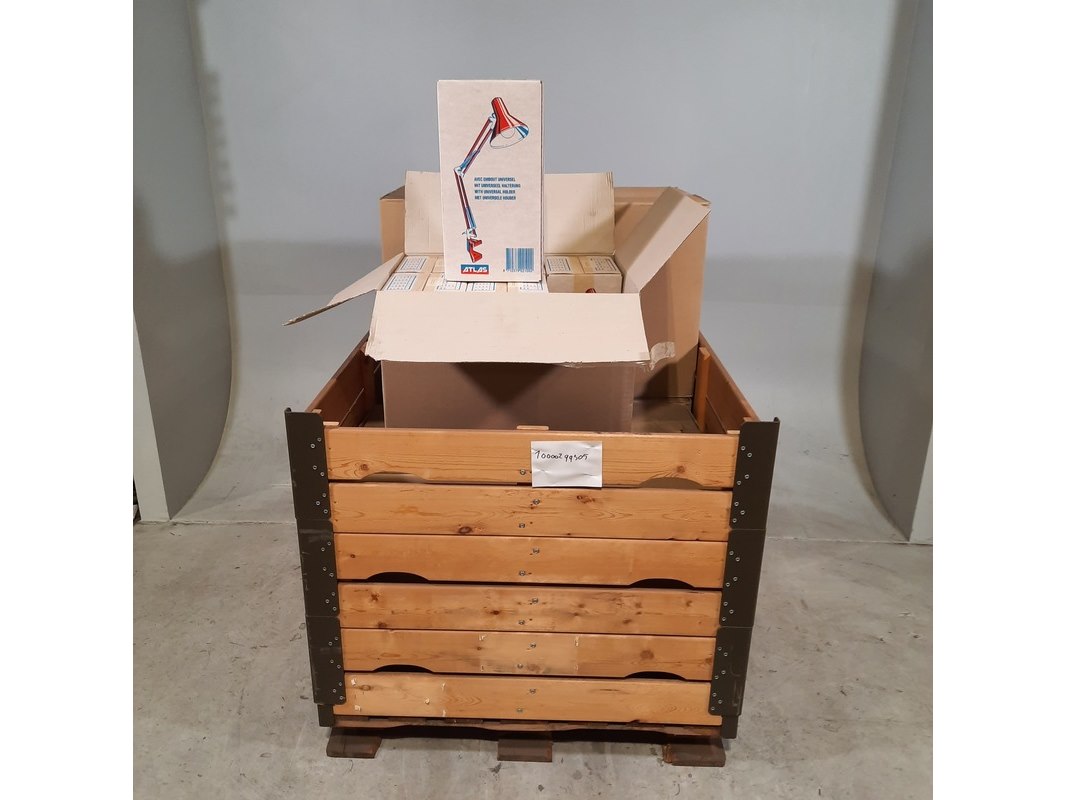 Merk: Atlas Product: Partij bureaulampen Specificaties: Diverse kleuren. Technische staat en compleetheid onbekend. Exclusief palletkist.
