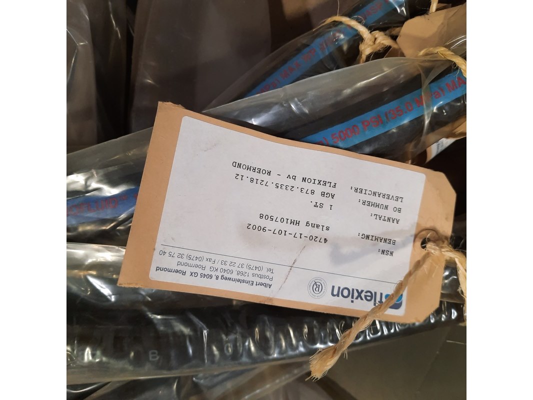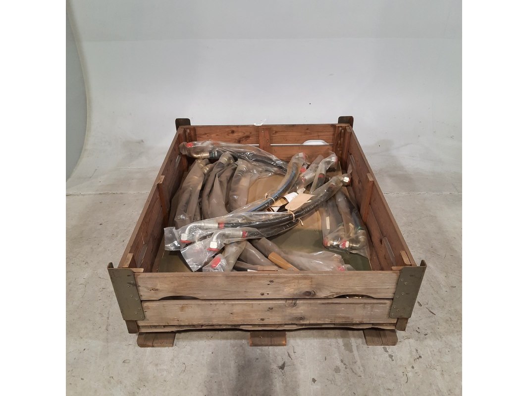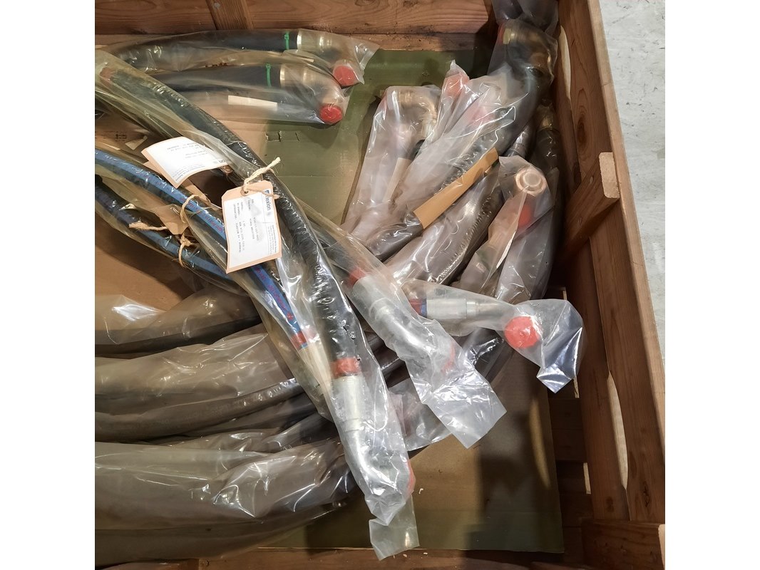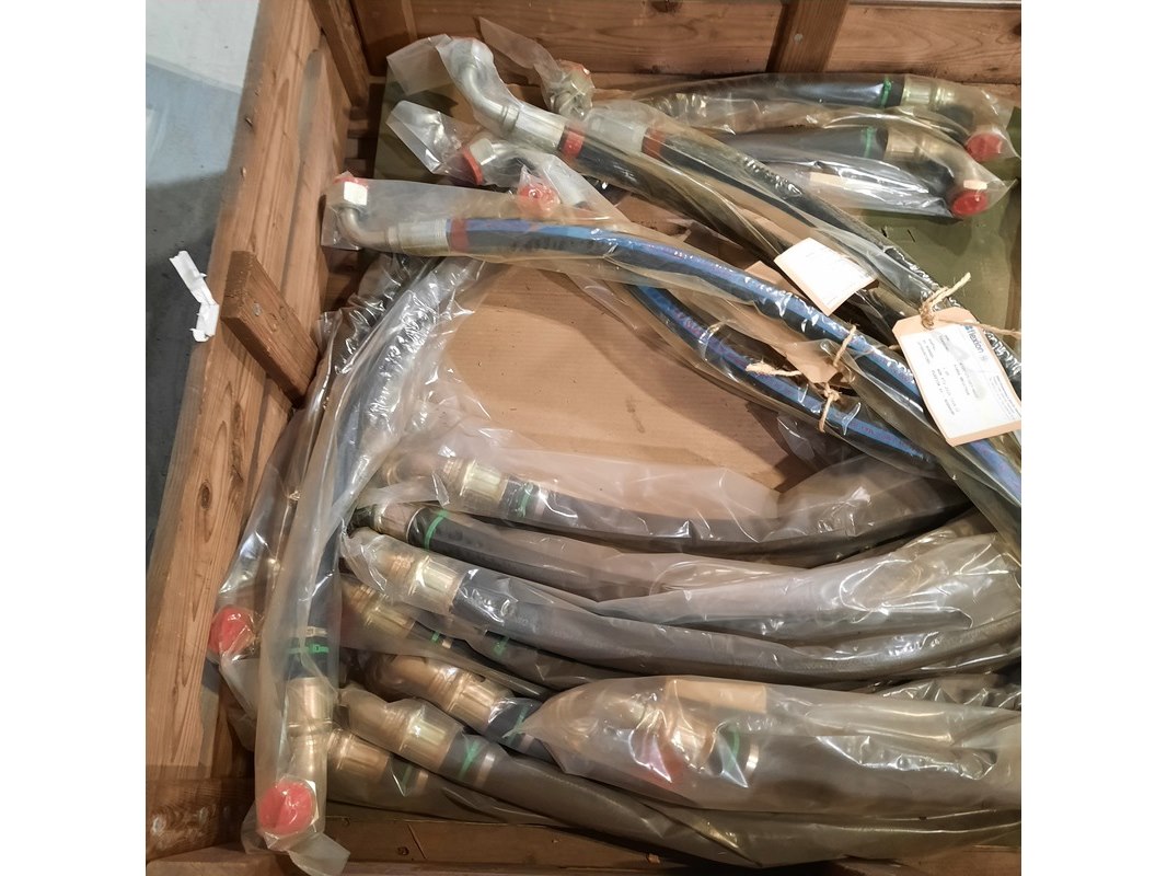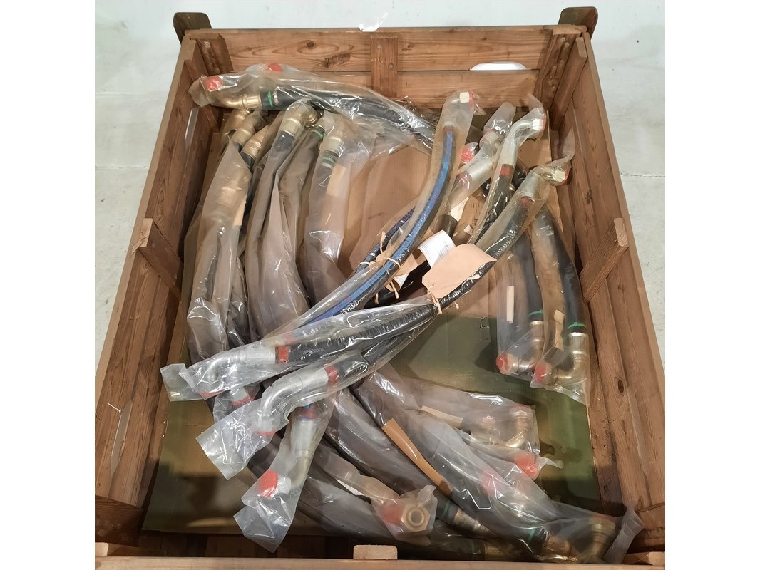 Merk: O.a. Gates Product: Partij hydraulische slangen Specificaties: Diverse soorten en maten. Technische staat en compleetheid onbekend. Exclusief palletkist.