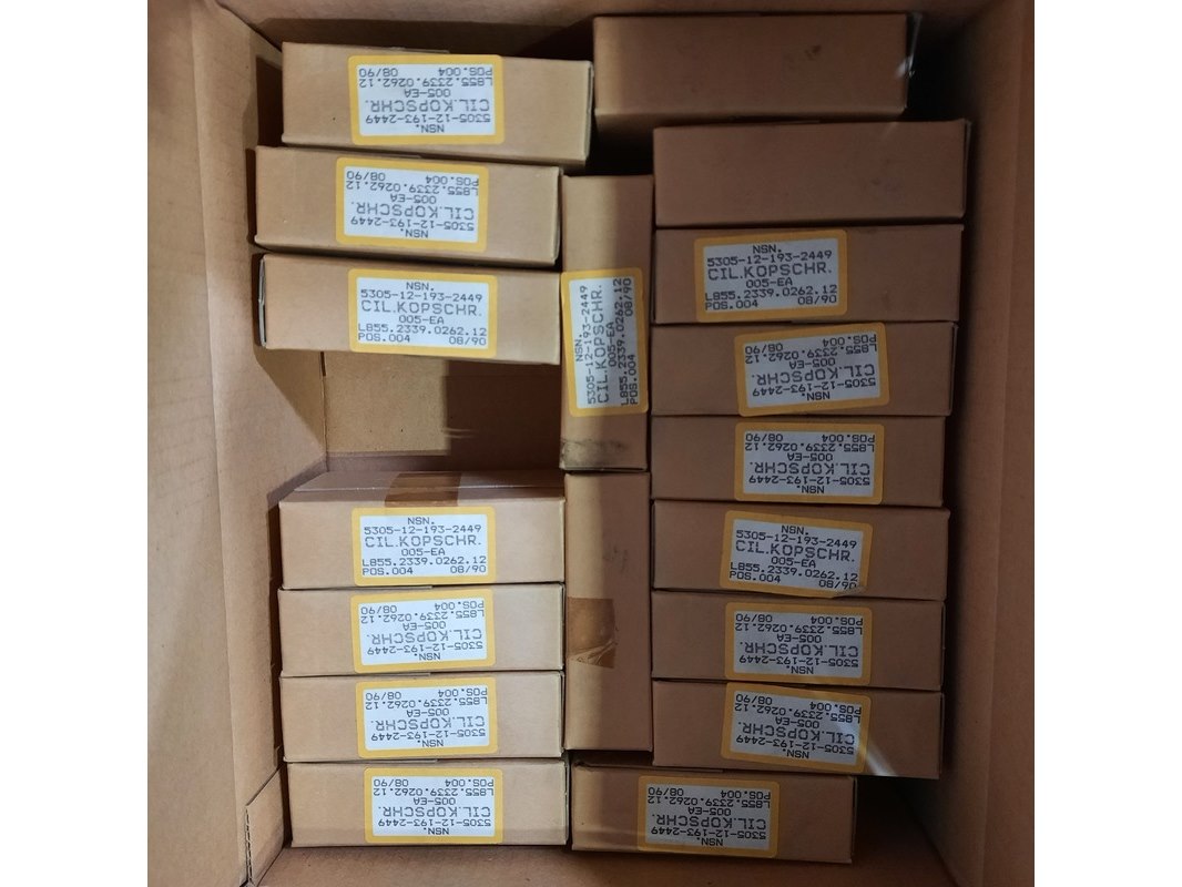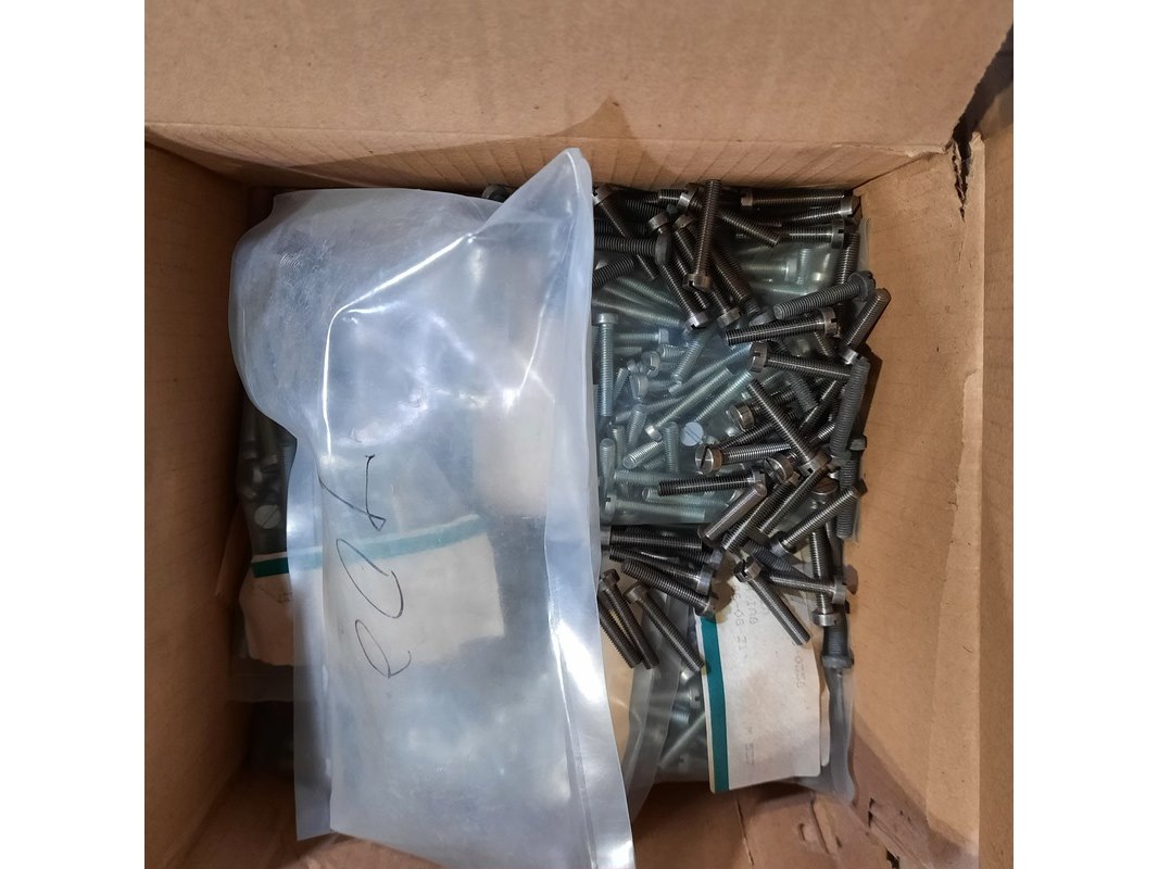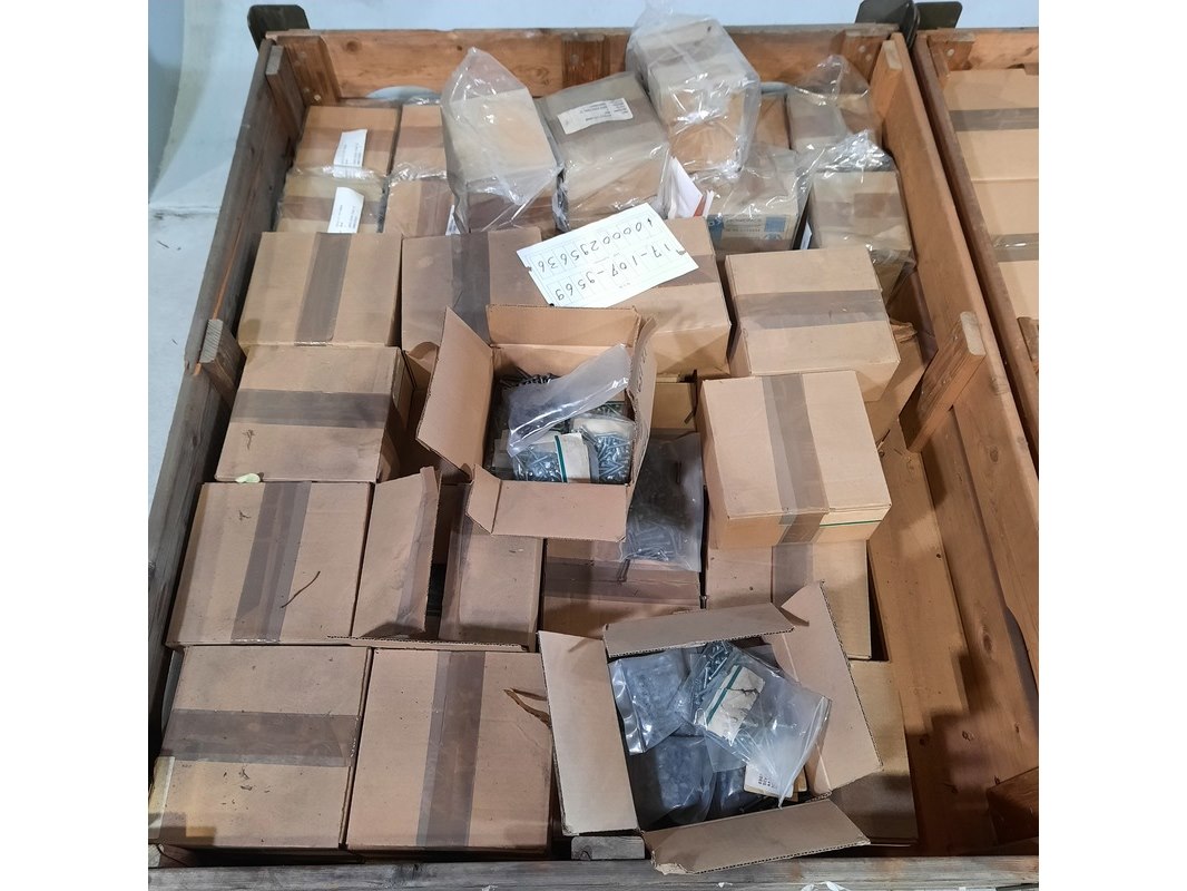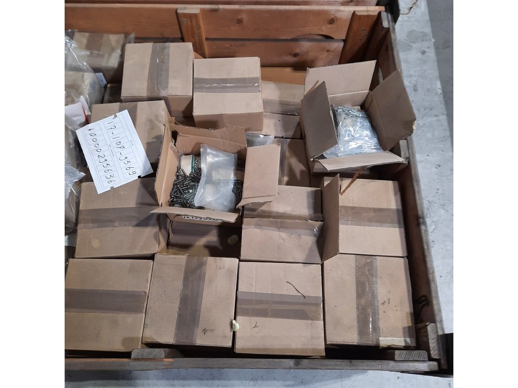 Product: Diverse ijzerwaren Specificaties: Bestaande uit o.a. Schroeven, inbusbouten, borgpen etc. Technische staat en compleetheid onbekend. Exclusief palletkist.