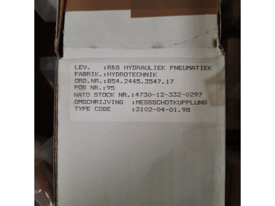 Merk: Hydrotechnik Product: Partij Schotkoppelingen Specificaties: Technische staat en compleetheid onbekend. Exclusief palletkist.