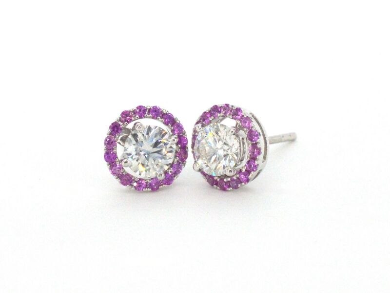 Product: Witgouden oorbellen met diamanten en roze saffieren Specificaties: Diamant: Natuurlijk Aantal: 2 stuks Slijpvorm: Briljant geslepen Gewicht (carat): 1.00 carat Kleur: G-H Zuiverheid: VS Slijpkwaliteit: Zeer mooi Edelsteen: Roze saffier Slijpvorm: Rond geslepen Gewicht (carat): 0.50 carat Kleur: Licht roze Zuiverheid: Met natuurlijke insluitsels Juweel: Oorbellen Gewicht: 2.8 gram Materiaal: 18k goud (750) Conditie: Nieuw Verpakking: Luxe sieradendoos Toelichting: De kwaliteit is overgenomen van het rapport behorend bij item. De waardebepaling is een beoordeling van een gecertificeerde diamantair, gebaseerd op consumentenprijzen. Consumentenprijs: € 9.450,-