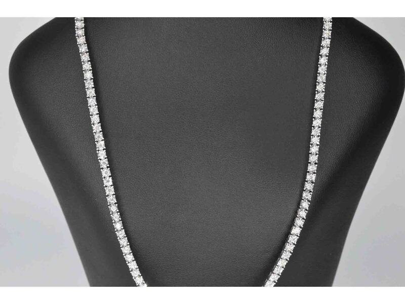 Product: Witgouden collier met diamanten 3.50 carat Specificaties: Diamant: Natuurlijk Slijpvorm: Briljant geslepen Gewicht (carat): 3.50 carat Kleur: F-G Zuiverheid: SI-P Slijpkwaliteit: Zeer mooi Juweel: Halsketting Gewicht: 25 gram Afmetingen/lengte: 42 cm Materiaal: 14 karaat (585) Conditie: Nieuw Verpakking: Luxe sieradendoos Toelichting: De kwaliteit is overgenomen van het rapport behorend bij item. De waardebepaling is een beoordeling van een gecertificeerde diamantair, gebaseerd op consumentenprijzen. Consumentenprijs: € 18.900,-