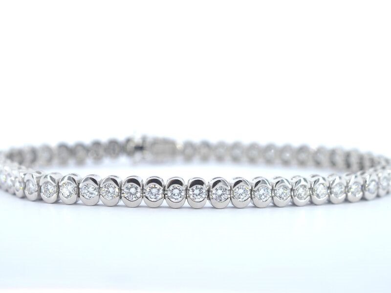 Product: Witgouden tennisarmband met diamanten Specificaties: Diamant: Natuurlijk Aantal: 52 stuks Slijpvorm: Briljant geslepen Gewicht (carat): 3.50 carat Kleur: D-E Zuiverheid: IF-VVS Slijpkwaliteit: Excellent Juweel: Armband Gewicht: 19.9 gram Afmetingen/lengte: 19 cm Materiaal: 18K goud (750) Conditie: Nieuw Verpakking: Luxe sieradendoos Toelichting: De kwaliteit is overgenomen van het rapport behorend bij item. De waardebepaling is een beoordeling van een gecertificeerde diamantair, gebaseerd op consumentenprijzen. Consumentenprijs: € 35.000,-